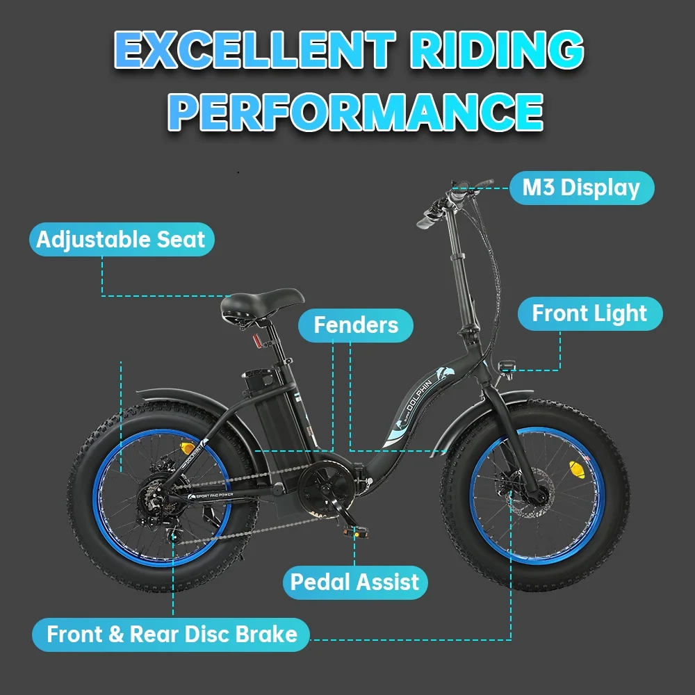 ECOTRIC 500 W 36 V E-Ride Foldable 20“ Electric Bicycle Fat Tire Removable Battery 7 Speed Children A-E516646