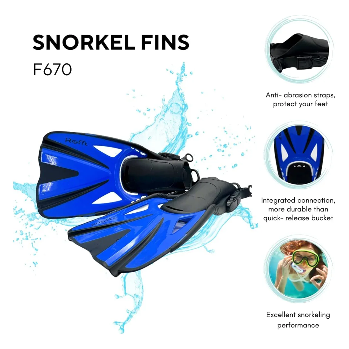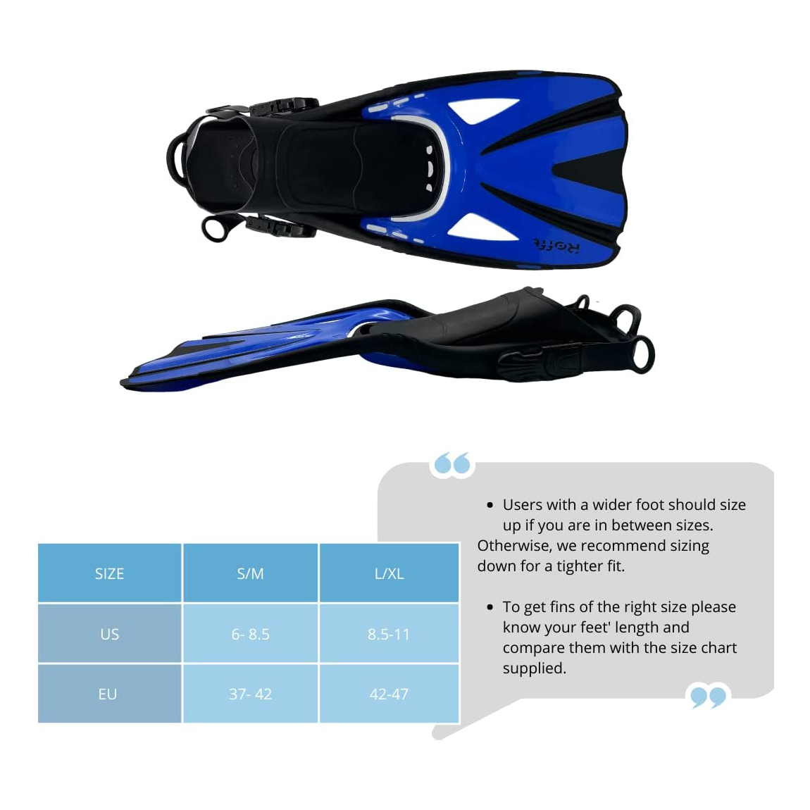 Rofft Long Floating fins for Snorkeling, Swimming and Diving - Adjustable Size for Adult Men and Women