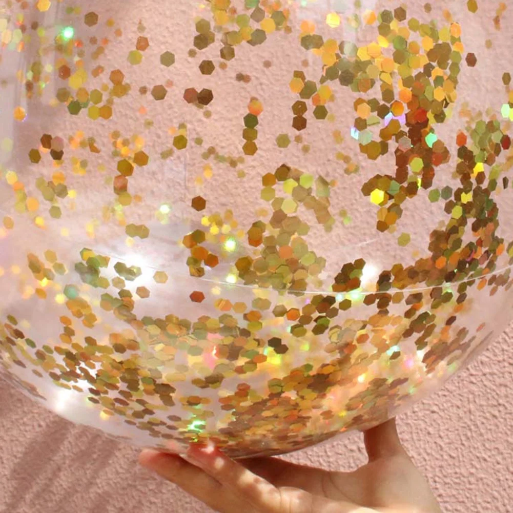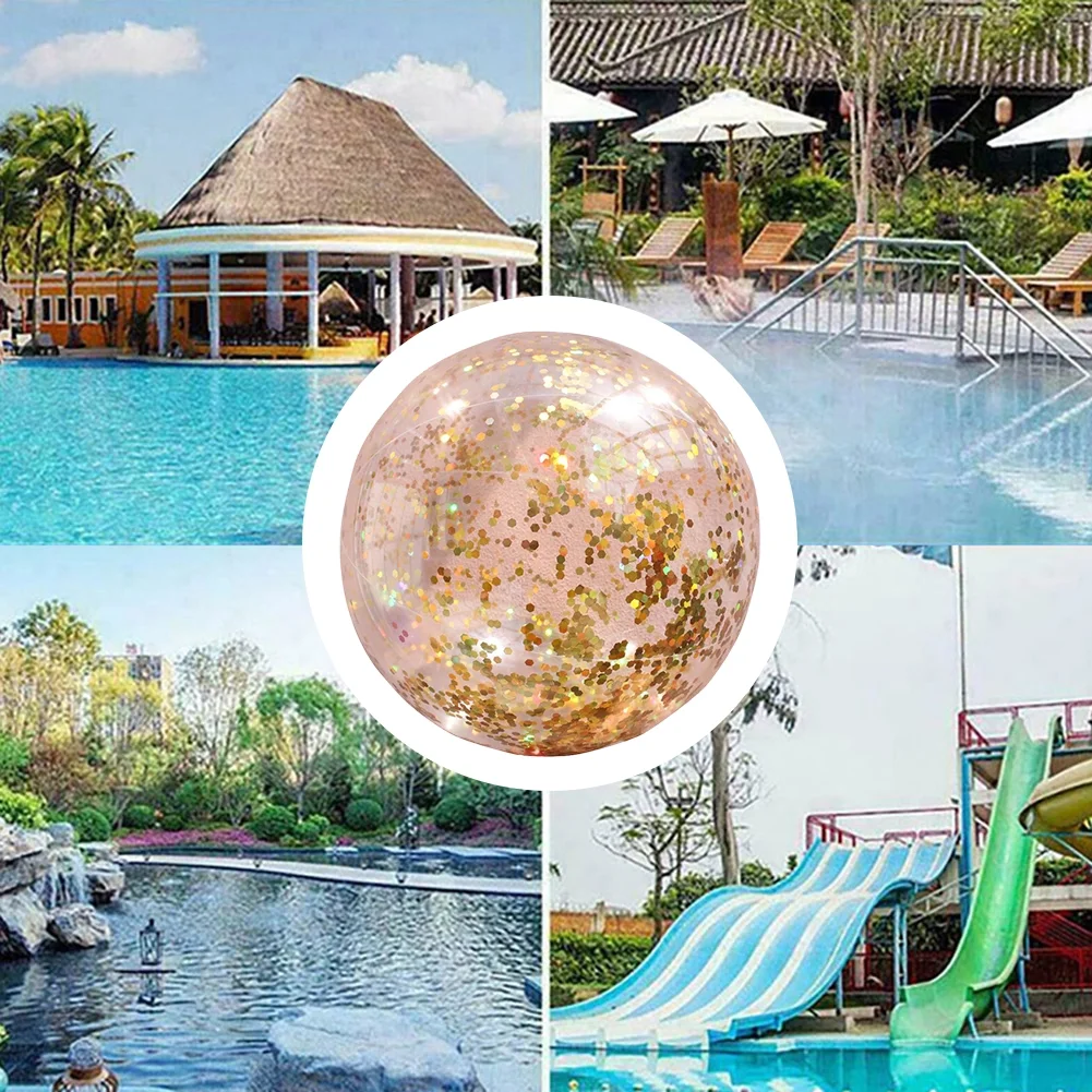 NUOLUX Ball Beach Balls Inflatable Pool Glitter Round Kids Transparent Water Clear Outdoor Sequin Rose Swimming Floating