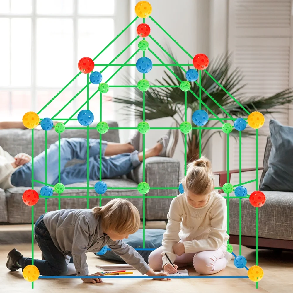 2BK Fort Building Kit for Kids,155pcs Forts Construction Builder Gift Toys for Boys and Girls,Fort Building Set Play Tent Rocket Castle Indoor Outdoor