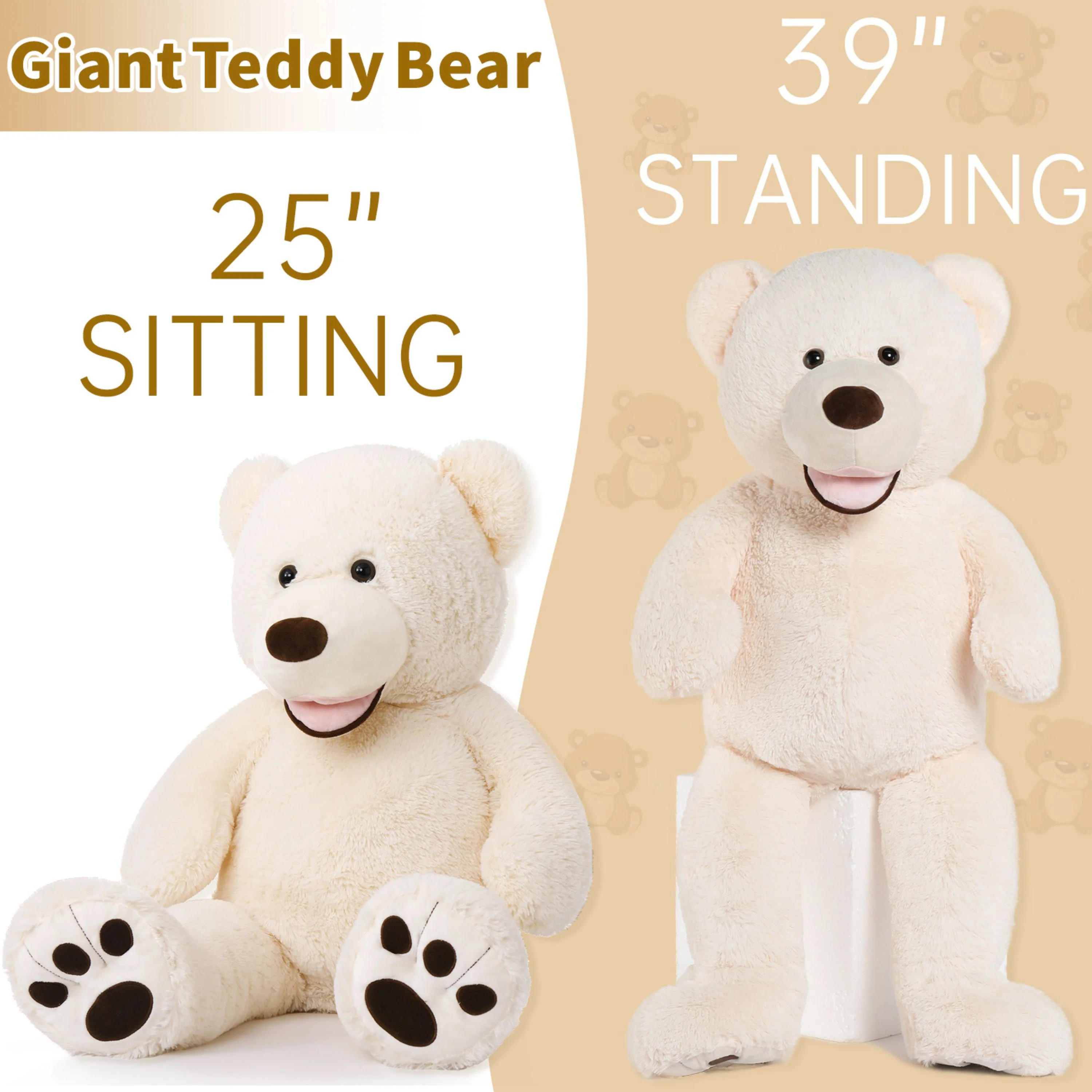MaoGoLan 39" Giant Teddy Bear with Big Footprints Plush Stuffed Animals