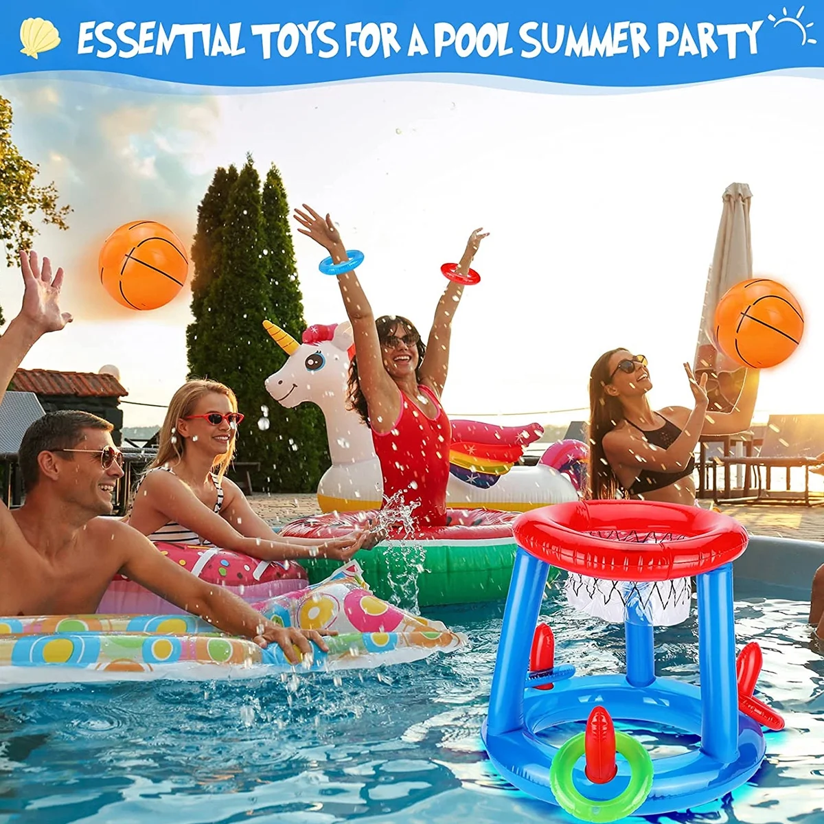 Morima Pool Toys,Swimming Toys Basketball Target Toss,Inflatable Basketball Hoop Swimming Pool Water Toys for Kids Toddlers,Ages 8+