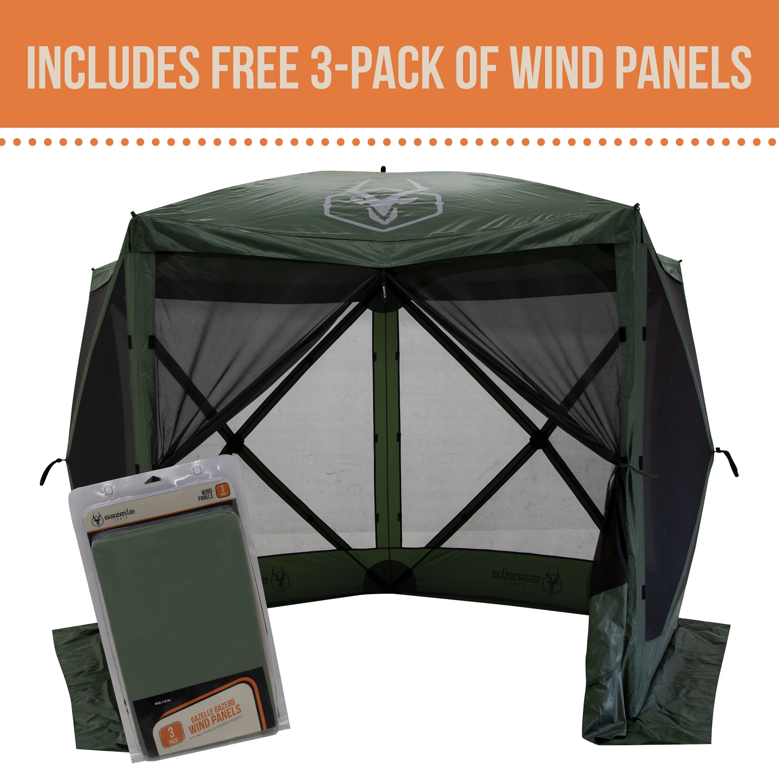 Gazelle Tents™ G5 5-Sided Portable Gazebo, Alpine Green, Includes 3pk. Wind Panels, 85" x 115" x 106", GK909