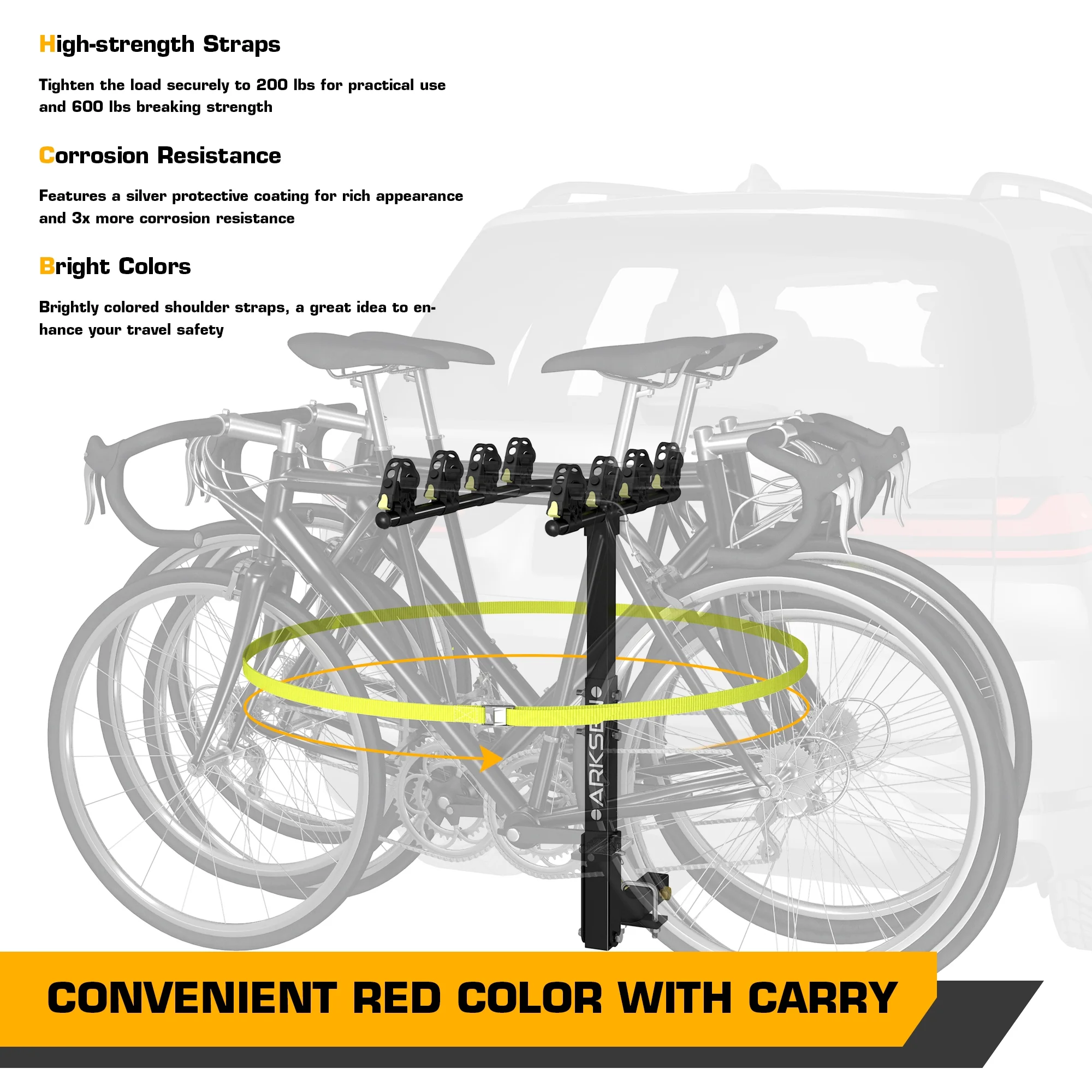 Arksen Premium 4-Bike Carrier Rack Hitch Mount Swing Down Bicycle Rack With 2-Inch Receiver