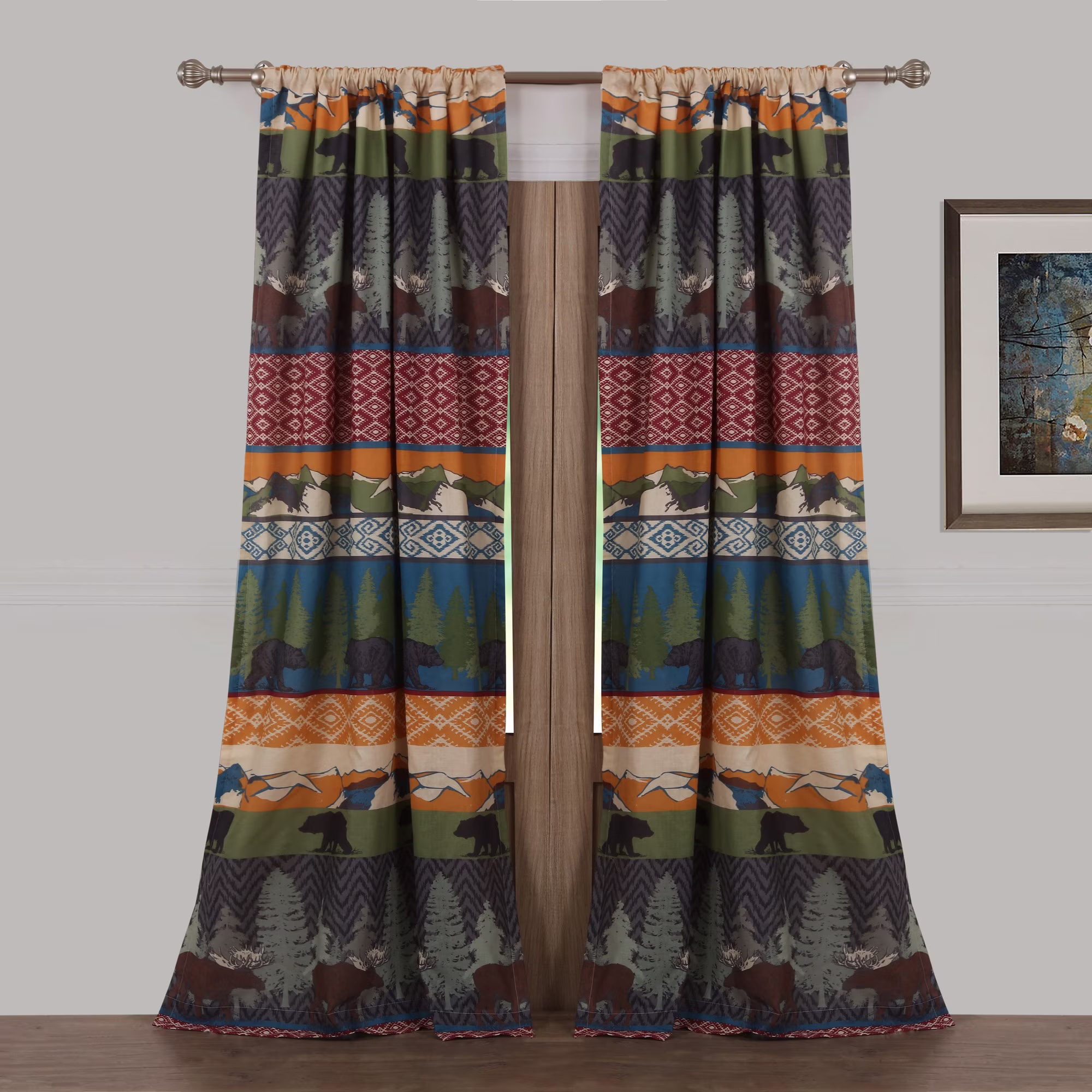 Global Trends Big Sky Lakehouse Cabin and Lodge Curtain Panels - Set of 2 - with Tiebacks