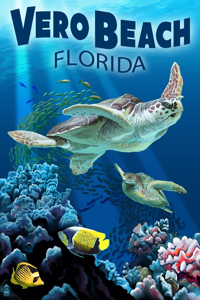 Sea Turtles, Vero Beach, Florida (24x36 Giclee Gallery Art Print, Vivid Textured Wall Decor)