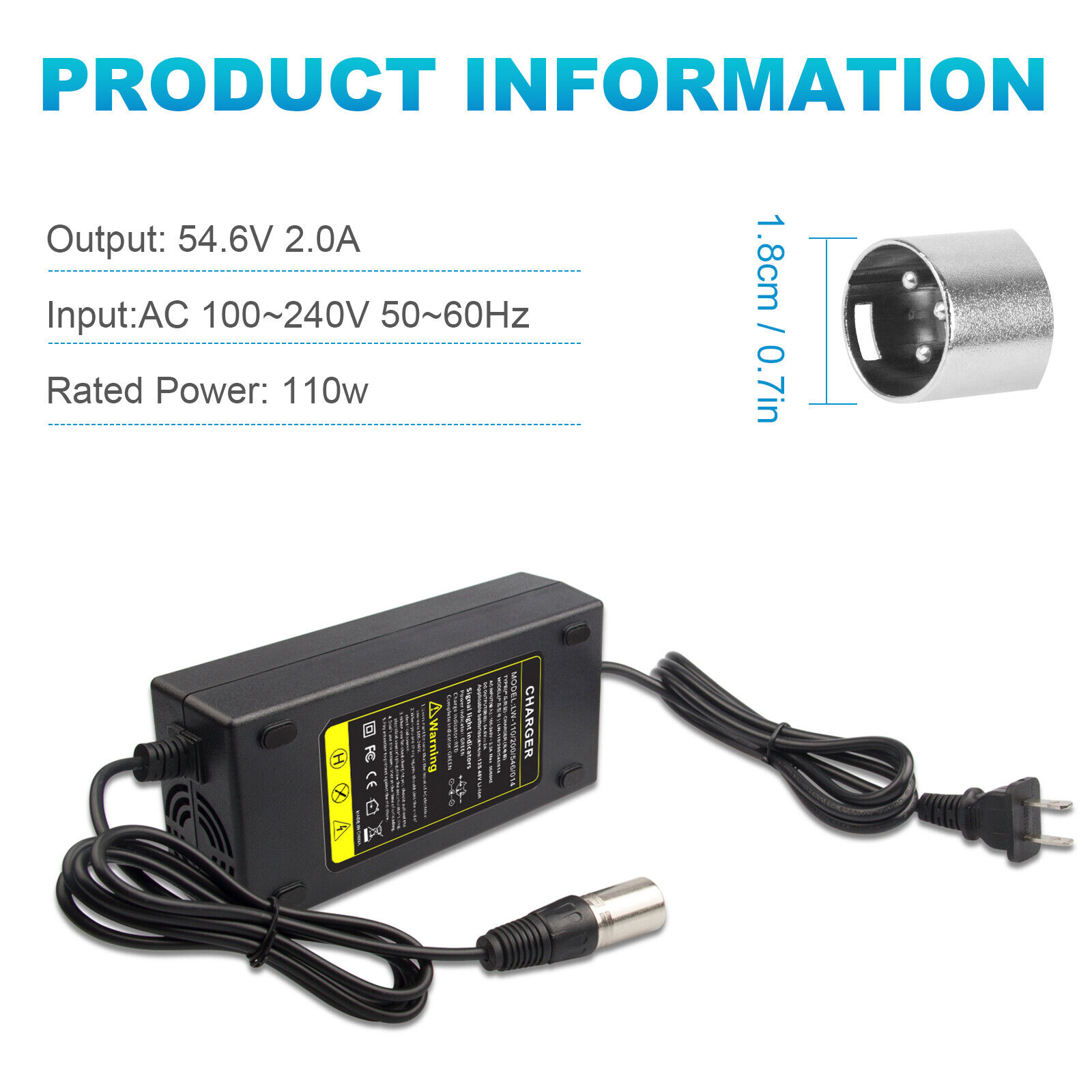 54.6V 2A Charger Electric Bike for 48 Volt Li-Ion Battery Power Supply Replace P
