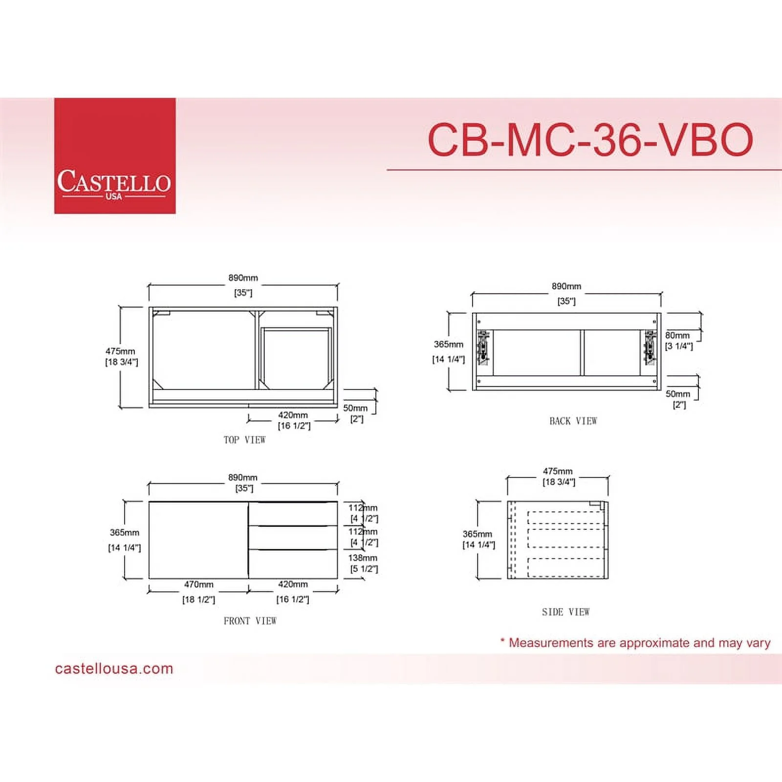 Castello USA Alpine 35" Gray Wood Floating Vanity Base/Brushed Nickel Handles