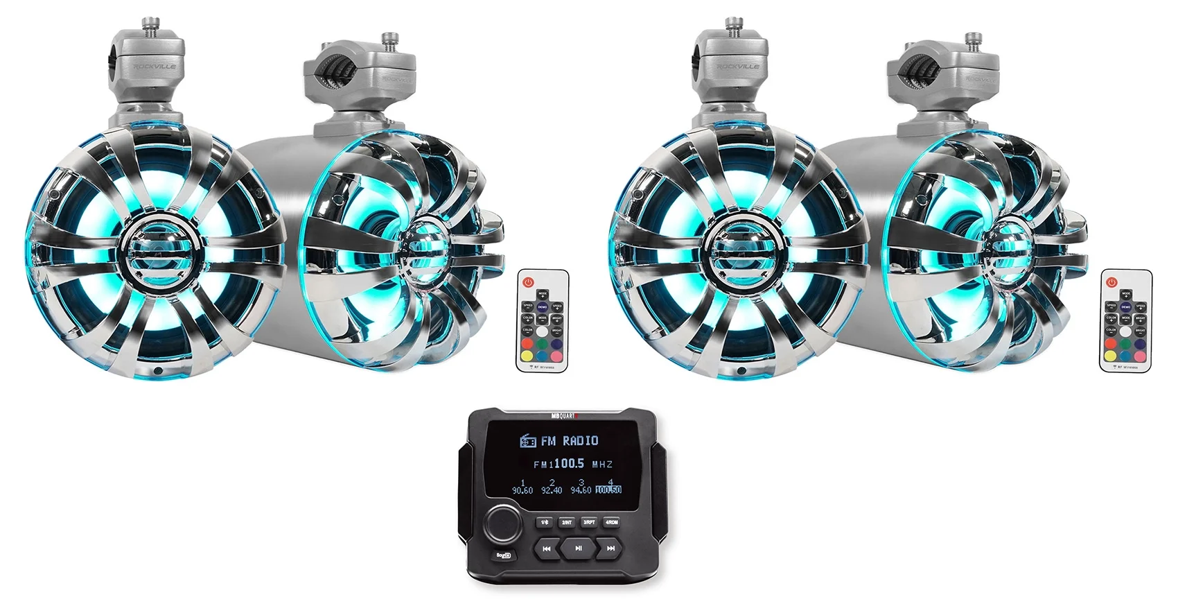 MB Quart GMR-LCD Marine/Boat Receiver w/Bluetooth+(4) 6.5" LED Tower Speakers