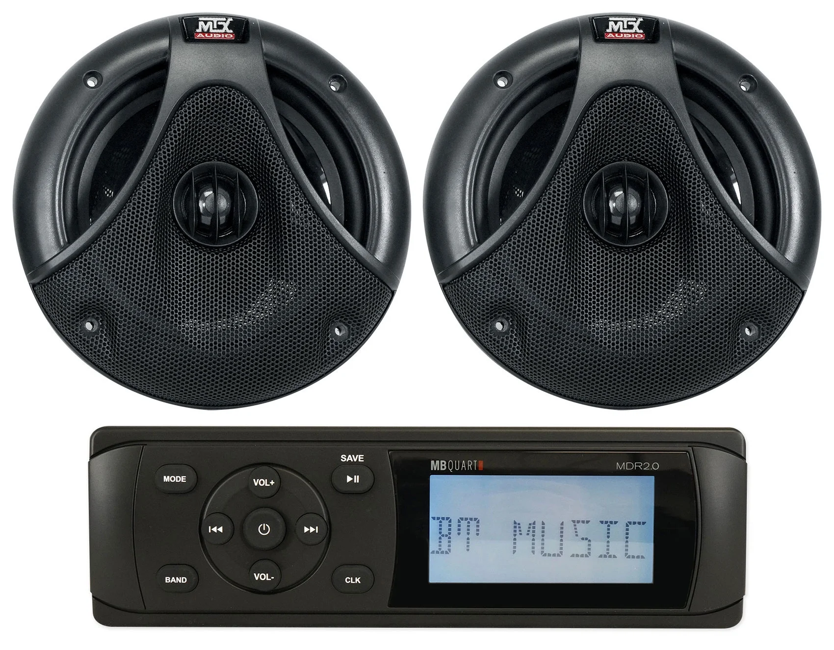 MB Quart MDR2.0 Marine/Boat Bluetooth/USB Receiver Radio+(2) MTX 6.5" Speakers