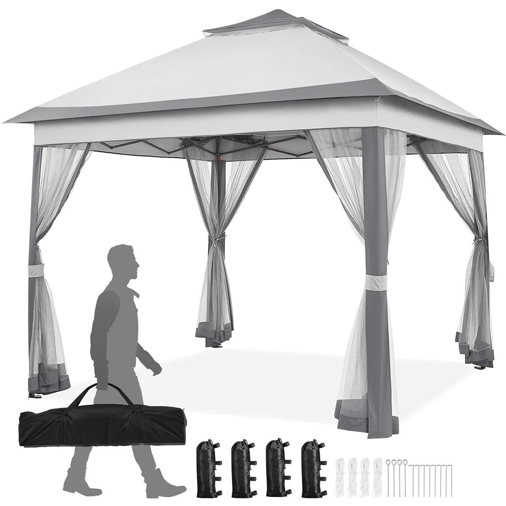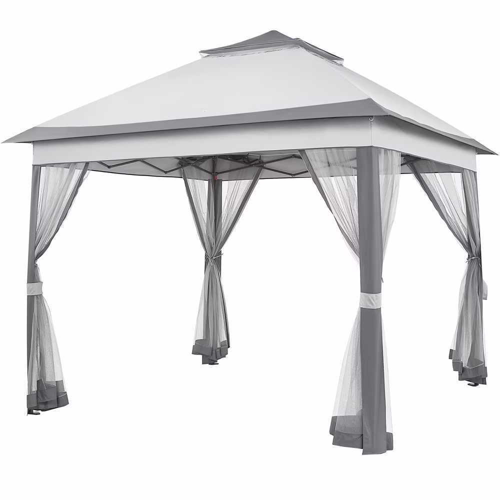 Alden Design 11x11 FT Pop-Up Gazebo with 4 Mesh Sidewalls for Outdoor, Light Gray