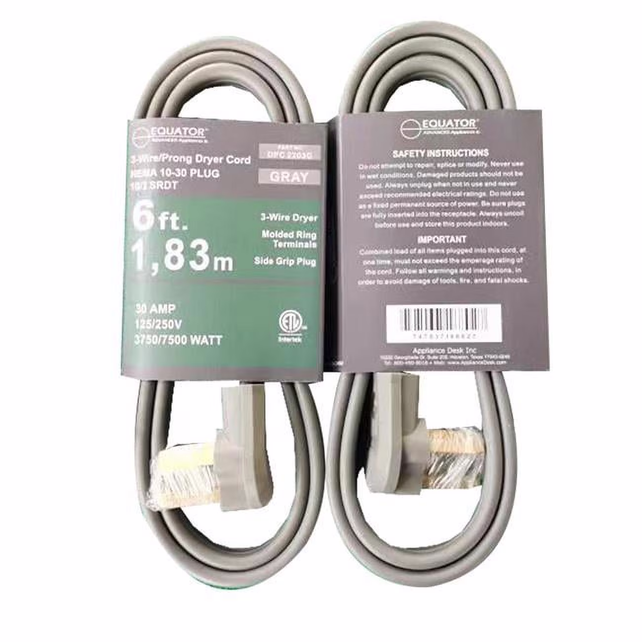Equator Advanced Appliances 3-Wire Dryer Equator 30A 6 ft 3-Prong Dryer Power Cord Grey