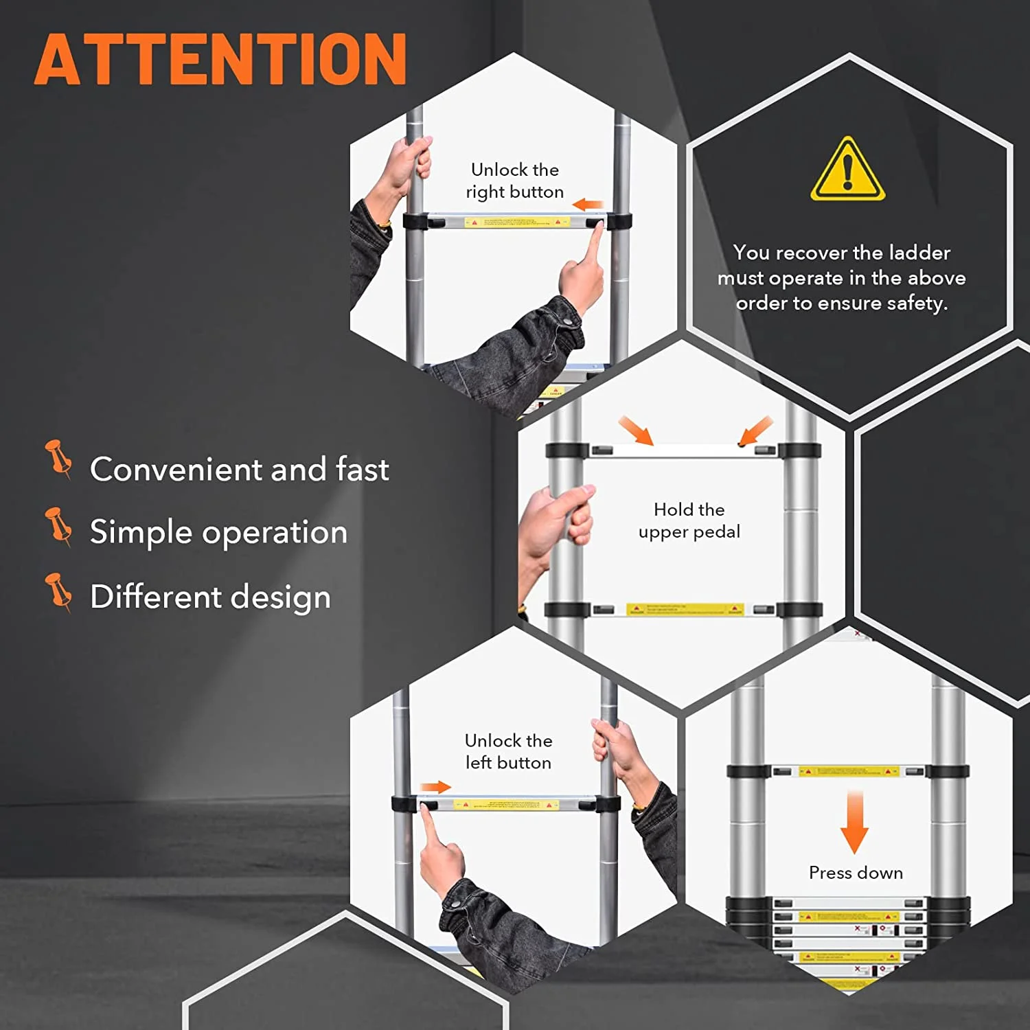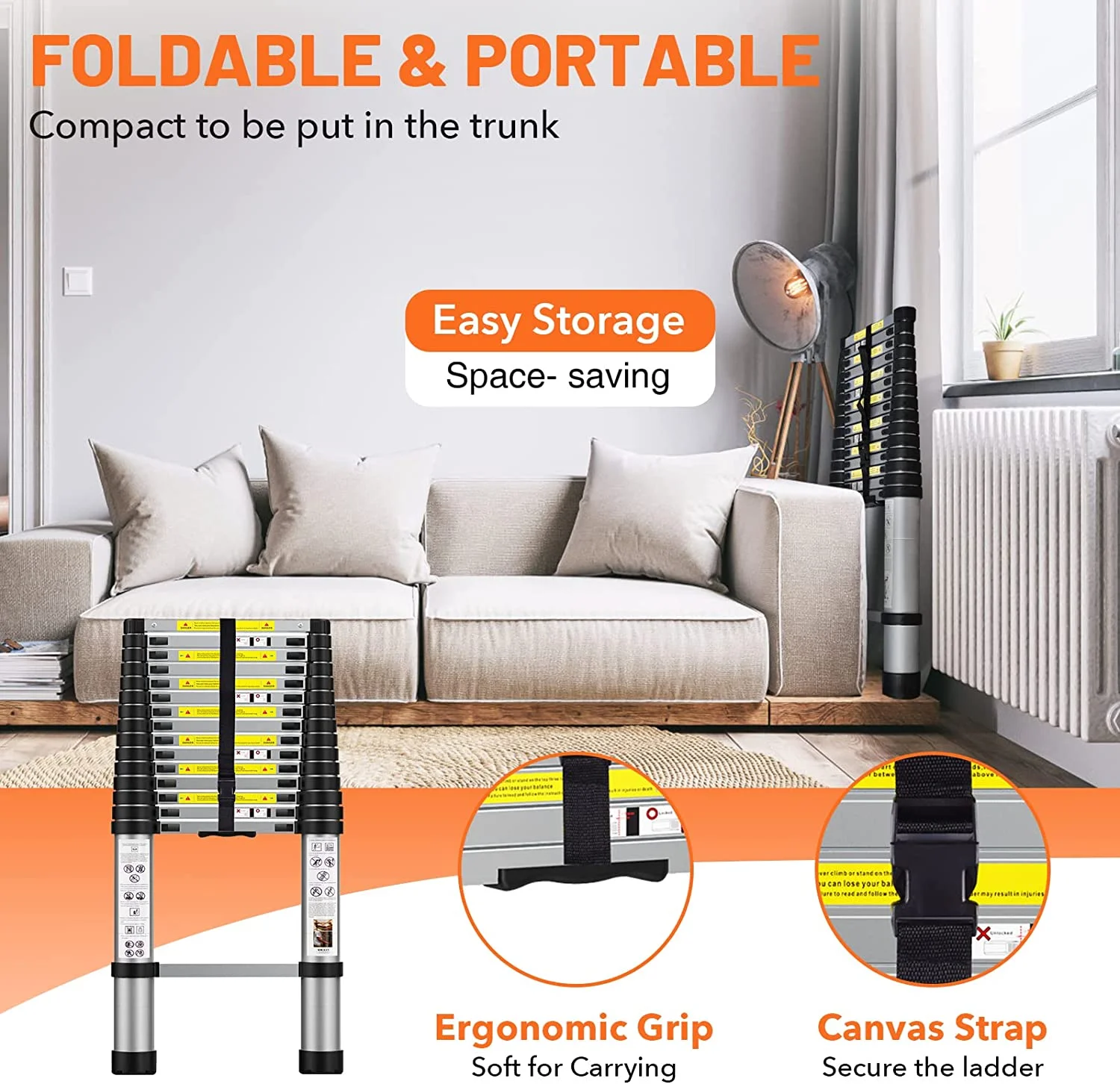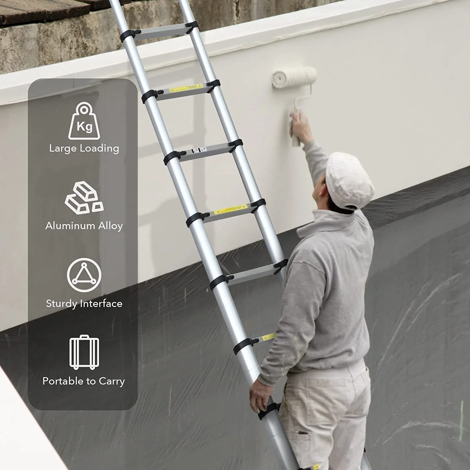 Dayplus 3.2 m Telescopic Ladder Extension Ladder with Removable Hook Multi-Purpose Ladder