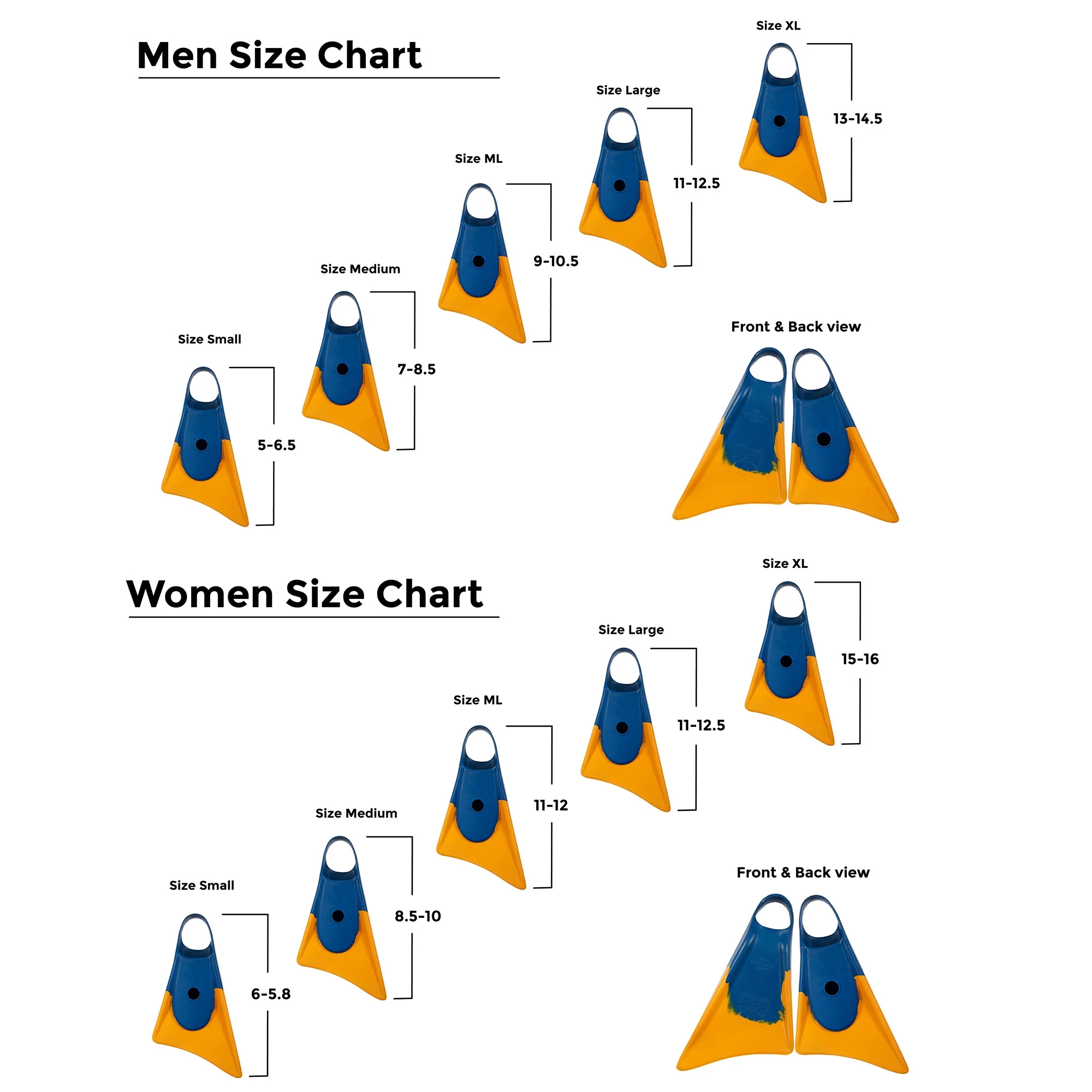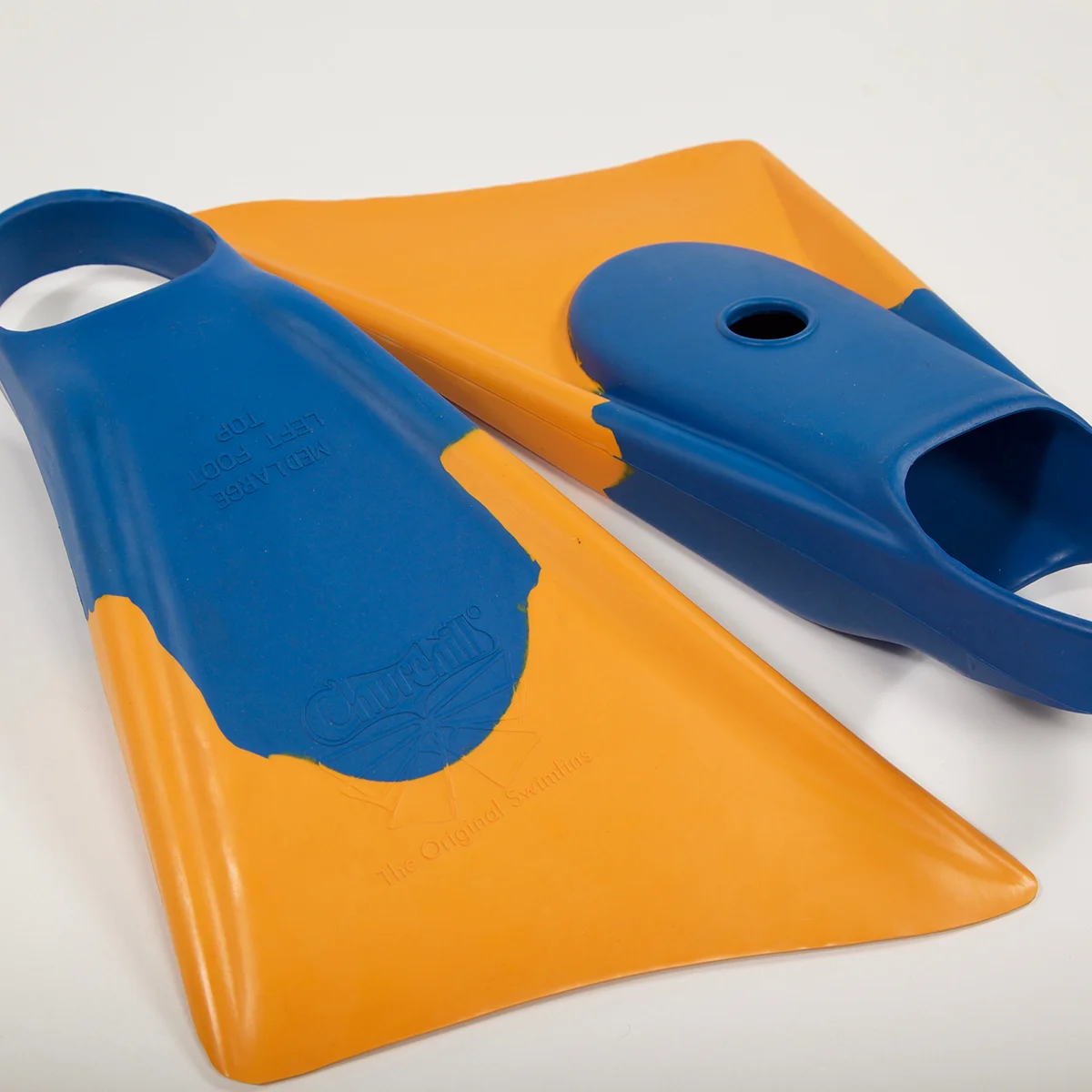 Churchill Makappuu Adult Unisex Floating Rubber Swim Fins, Blue/Orange, Medium