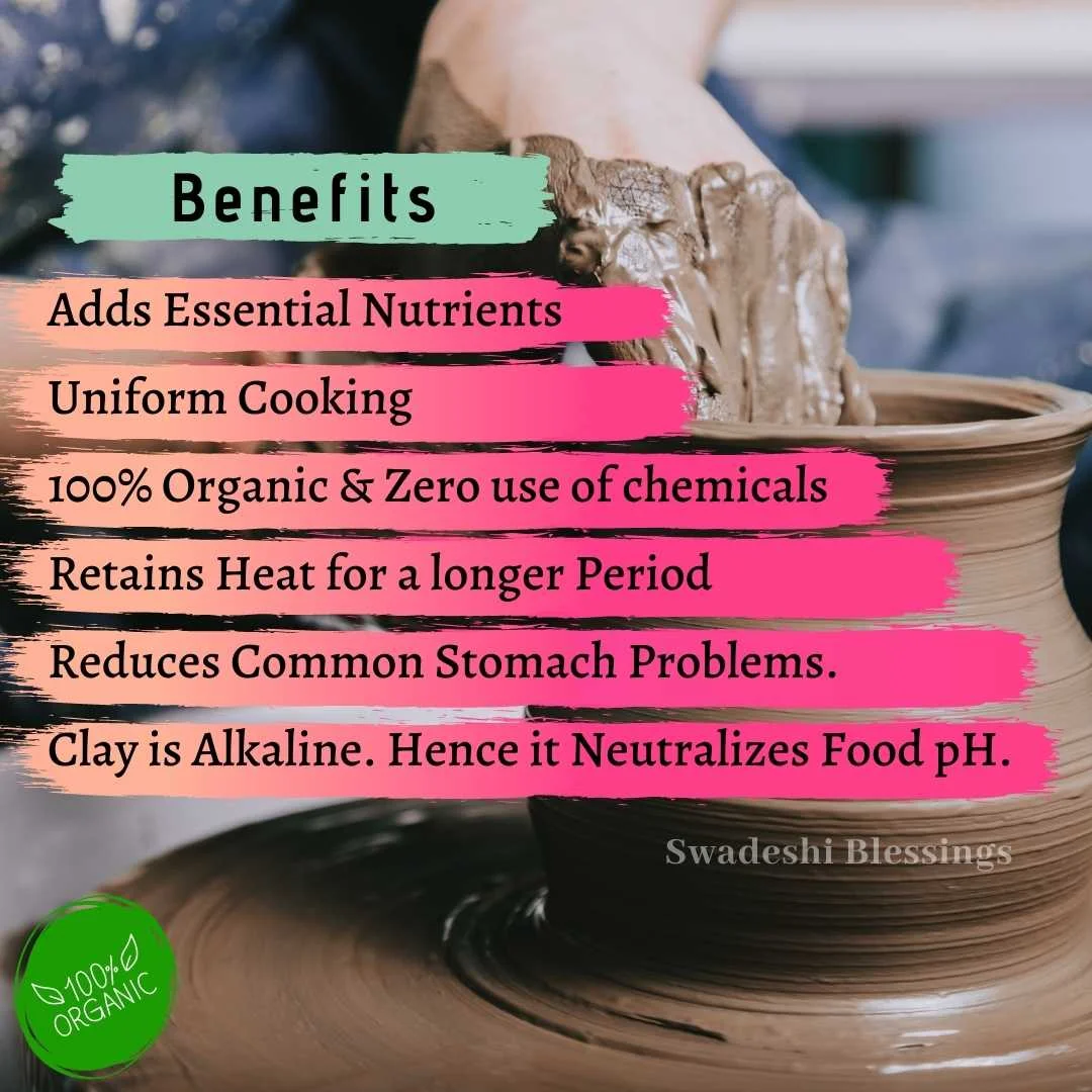 Swadeshi Blessings Unglazed Clay Pot For Serving with Lid Combo 2.5 & 3.5L/ Lead Free Earthen Kadai