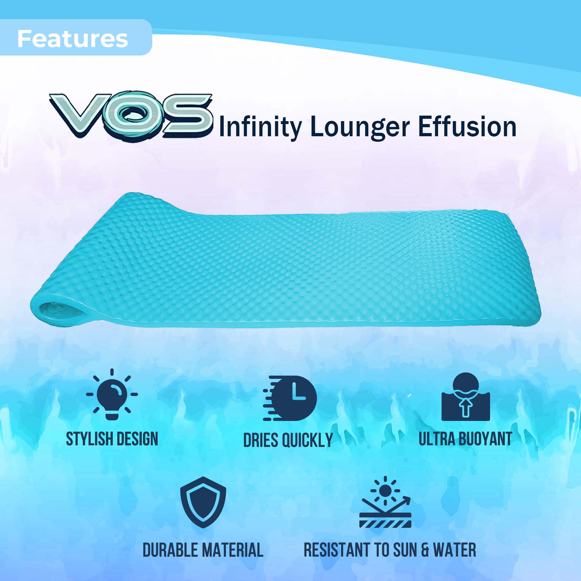 VOS Extreme Wavy Swimming Pool Lounger – Premium Ultra Buoyant Foam Mat for Adults & Kids -(Seafoam Blue)