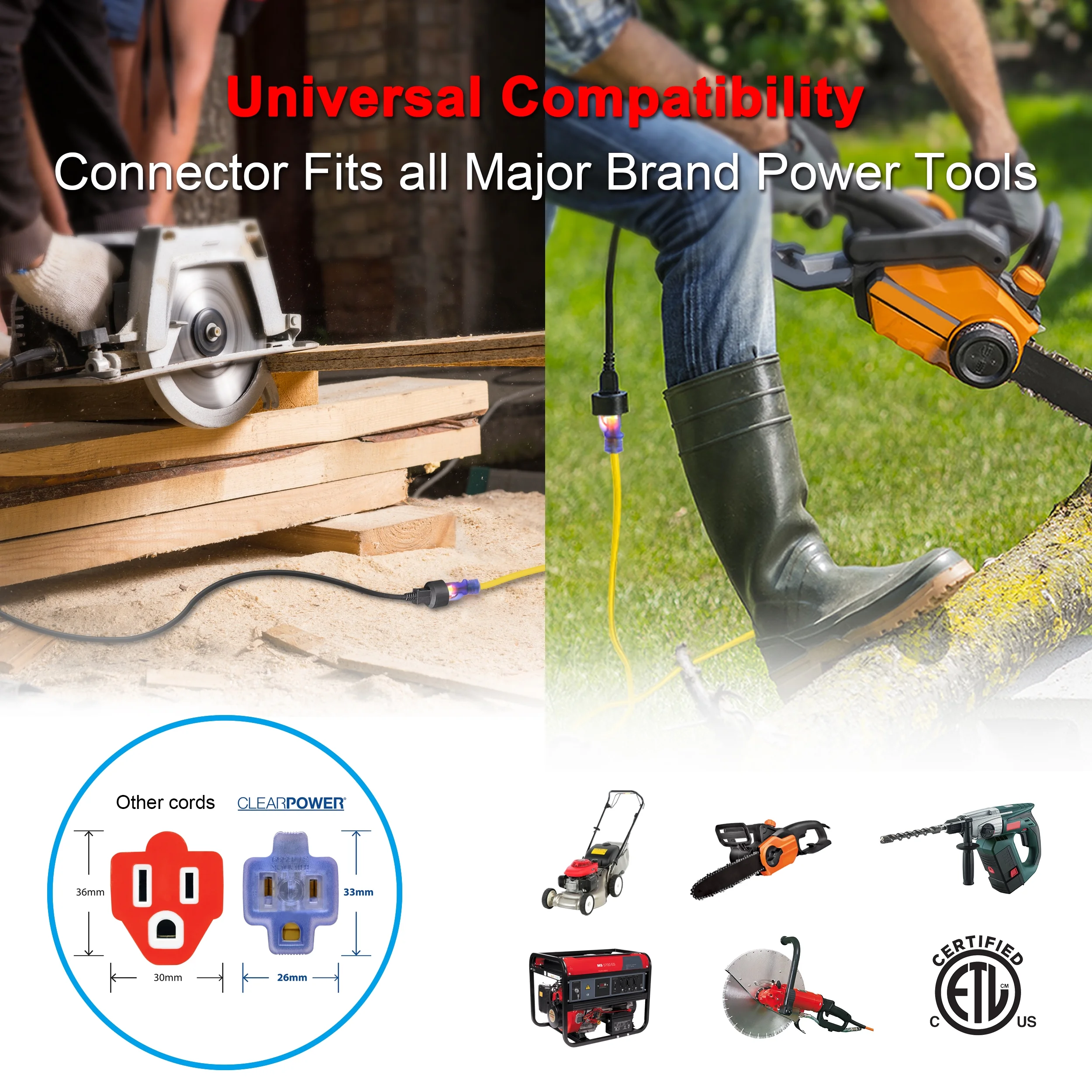 Clear Power 12/3 SJTOW 100 ft Outdoor Extension Cord with 5 Outlet Adapter Combo, Heavy Duty Contractor Grade, Yellow, CPCO90001
