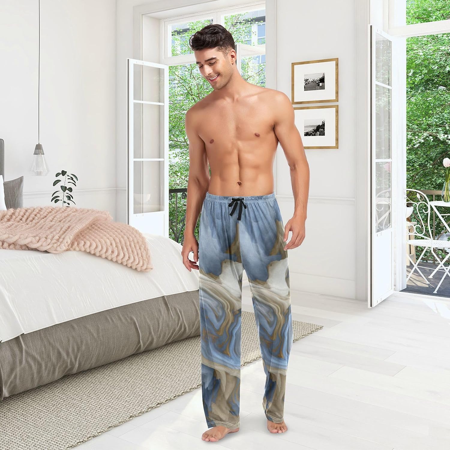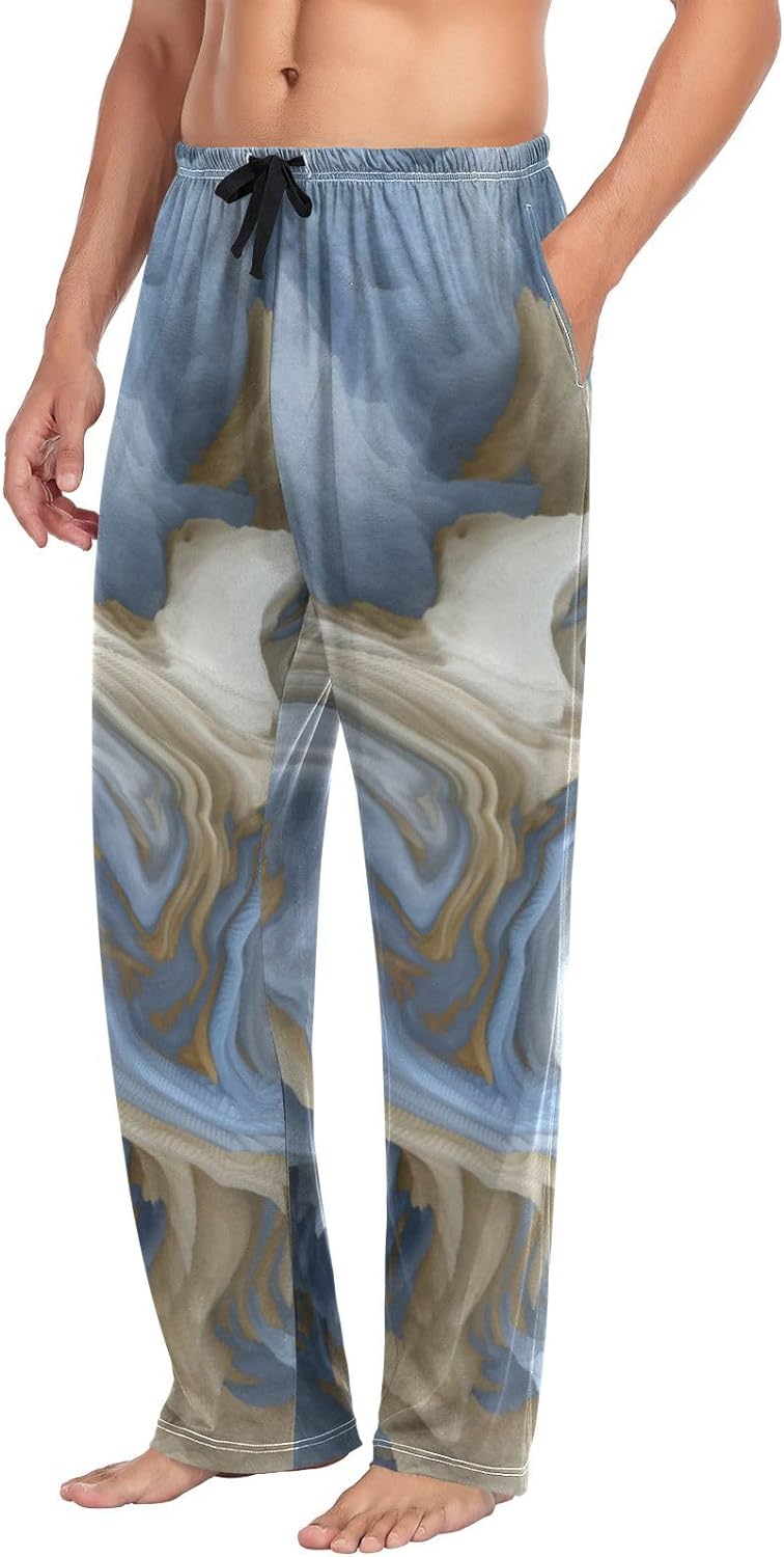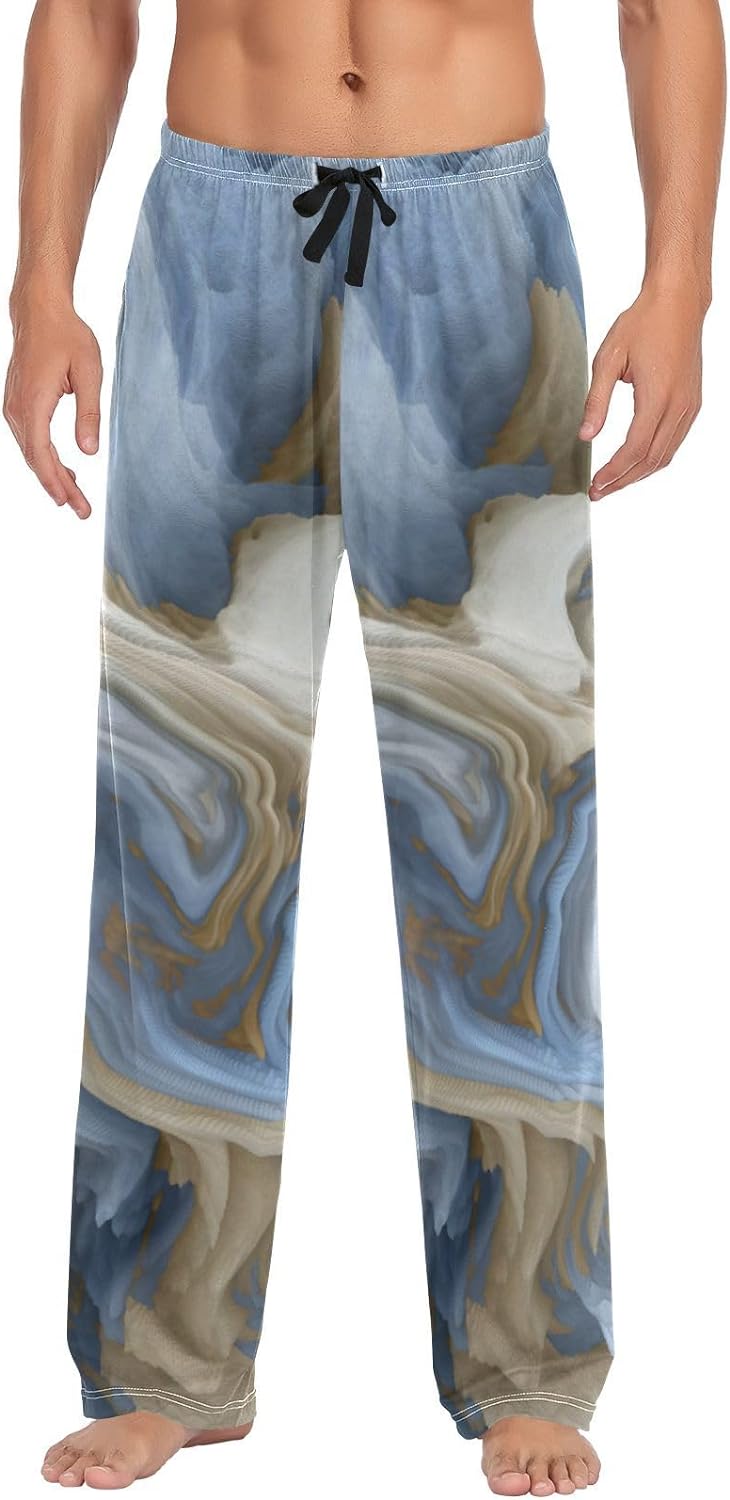 FREEAMG Men's Pajama Pants Fluid Marble Magic Grey Cotton Pjs Sleepwear Bottoms S-XXL