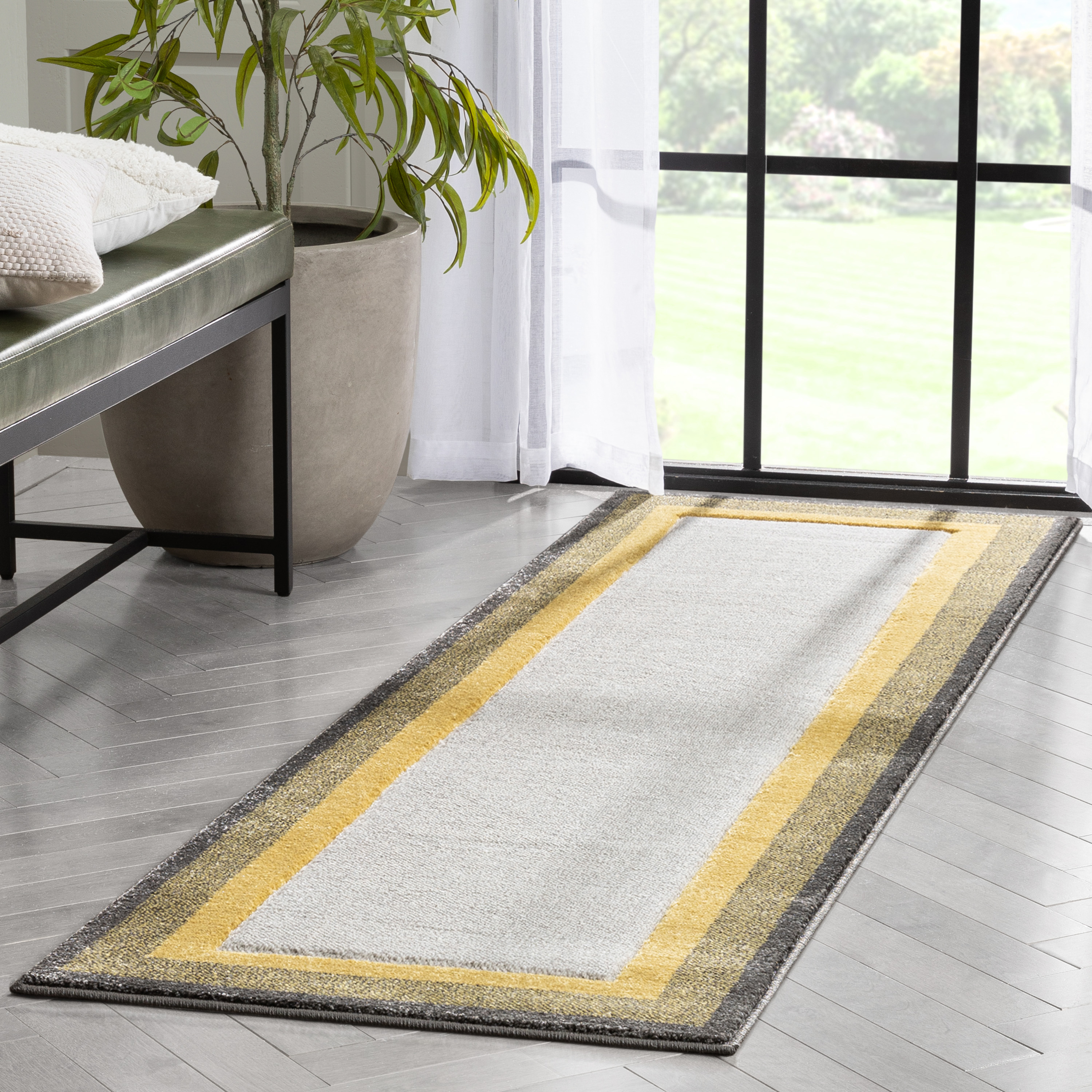 Well Woven | Arian Yellow | Solid Border Geometric Modern Runner Rug 2x7 (2'3" x 7'3" Runner)