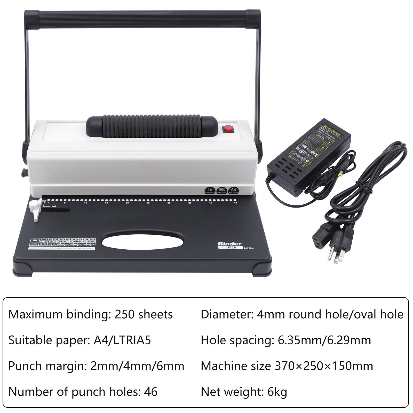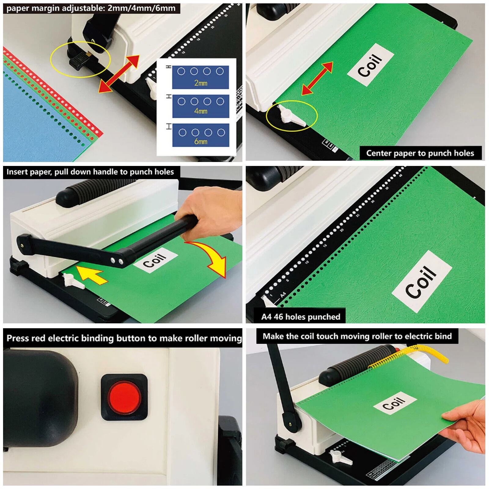 DENEST 64 Holes Manual Coil Punch & Binding Machine with Electric Coil Inserter 110V