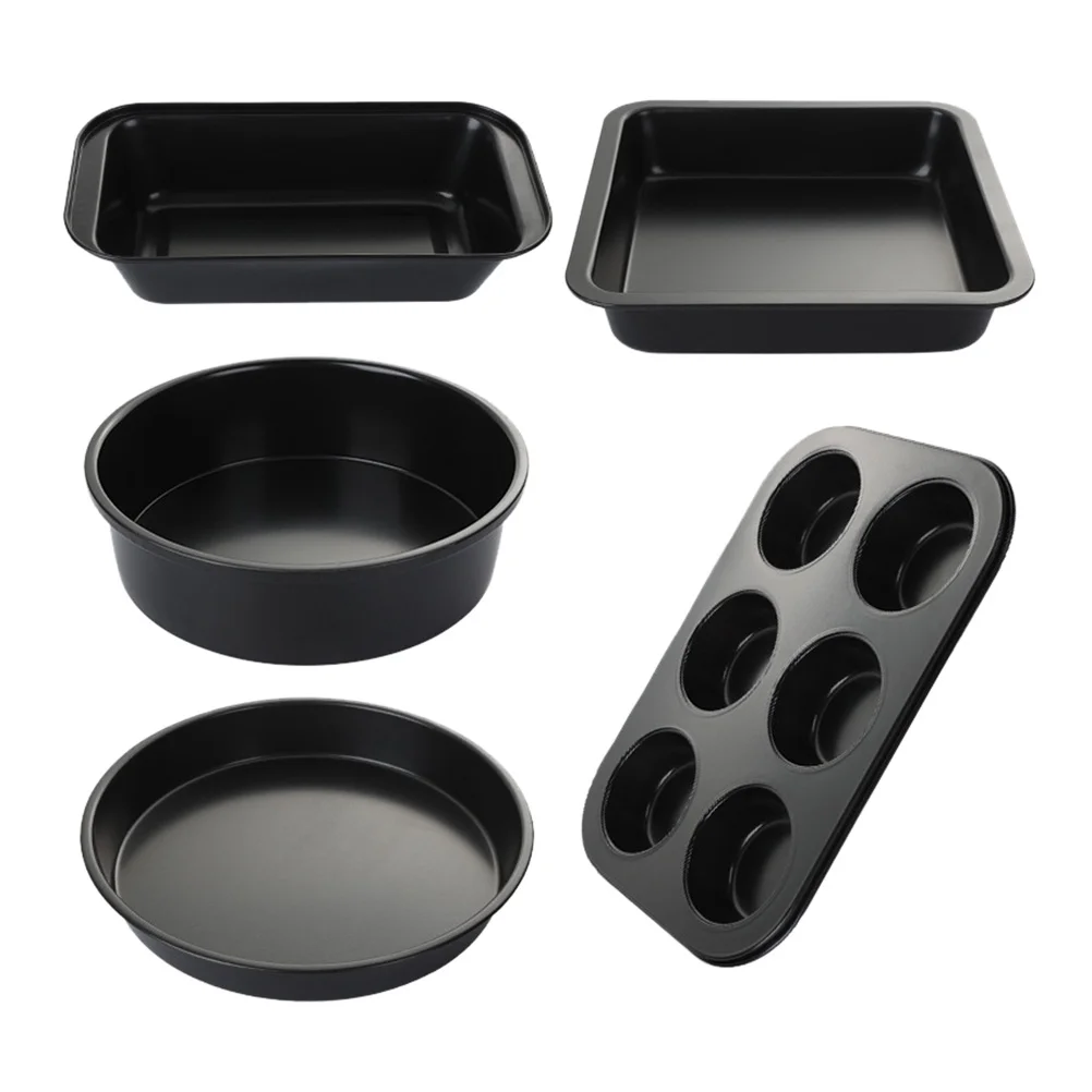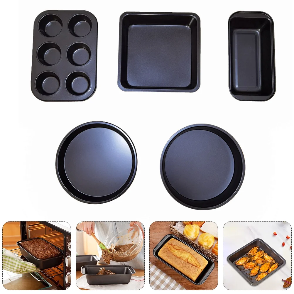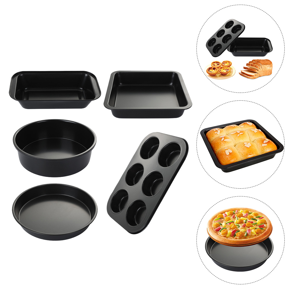 1 Set 5pcs Baking Pan Baking Tools Pizza Toast Pans for Home Bakery (Black)