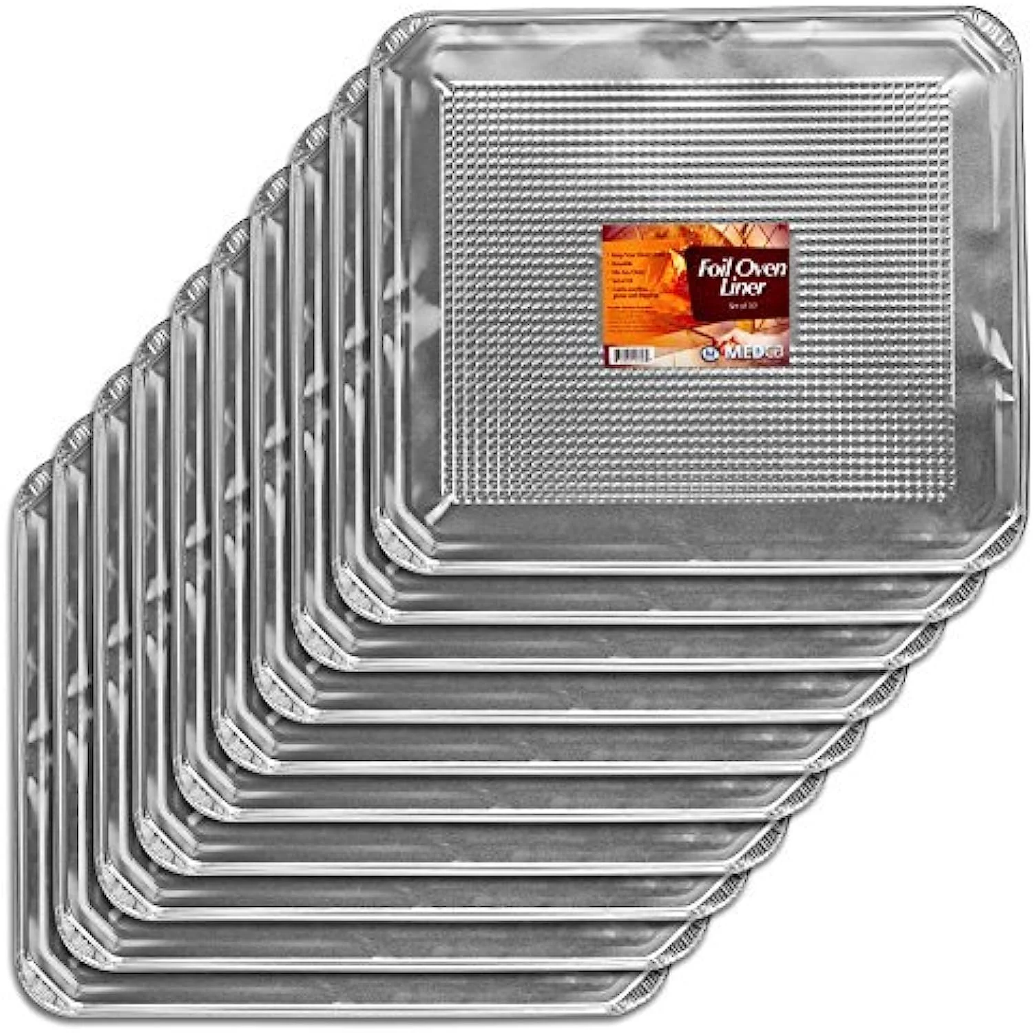 MEDca Foil Oven Liner 18.5 x 15.5 inch Set of 10 for Food Wraps - Silver, Aluminum
