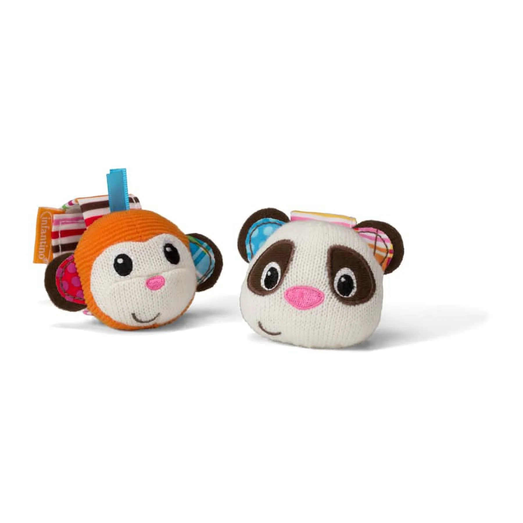 Infantino See Play N' Go Baby Wrist Rattles, Monkey and Panda, for Babies 0+ Months, 2-Count