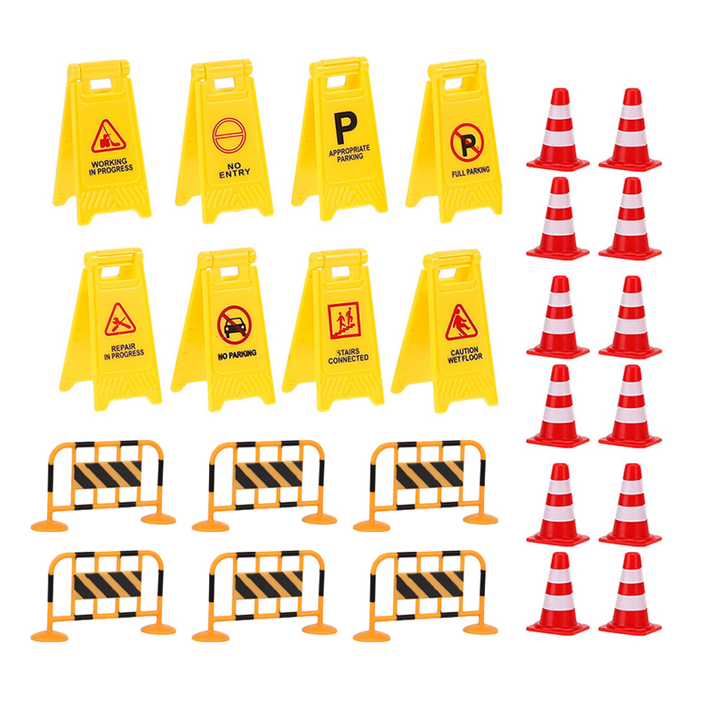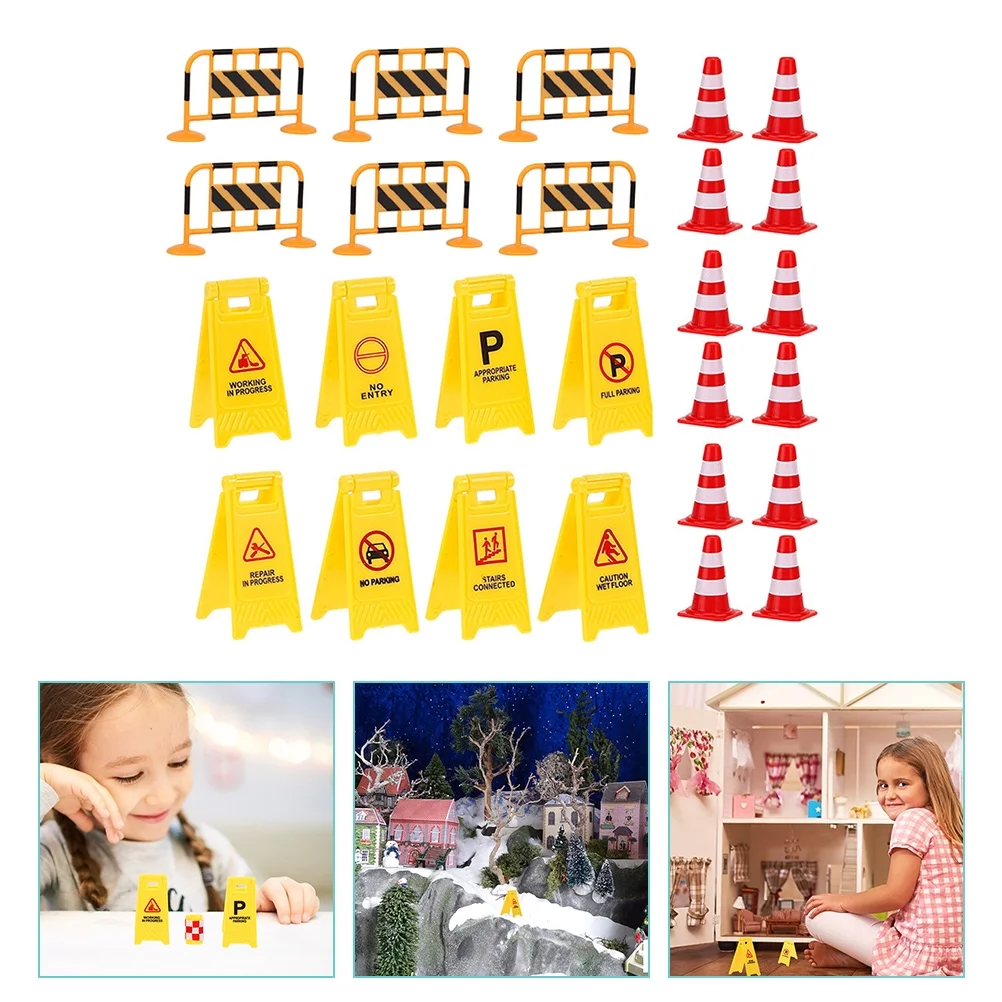 Traffic Signs Sign Cones Road Mini Construction Toys Play Kids Street Cone Roadblock Miniature Party Playset Stop