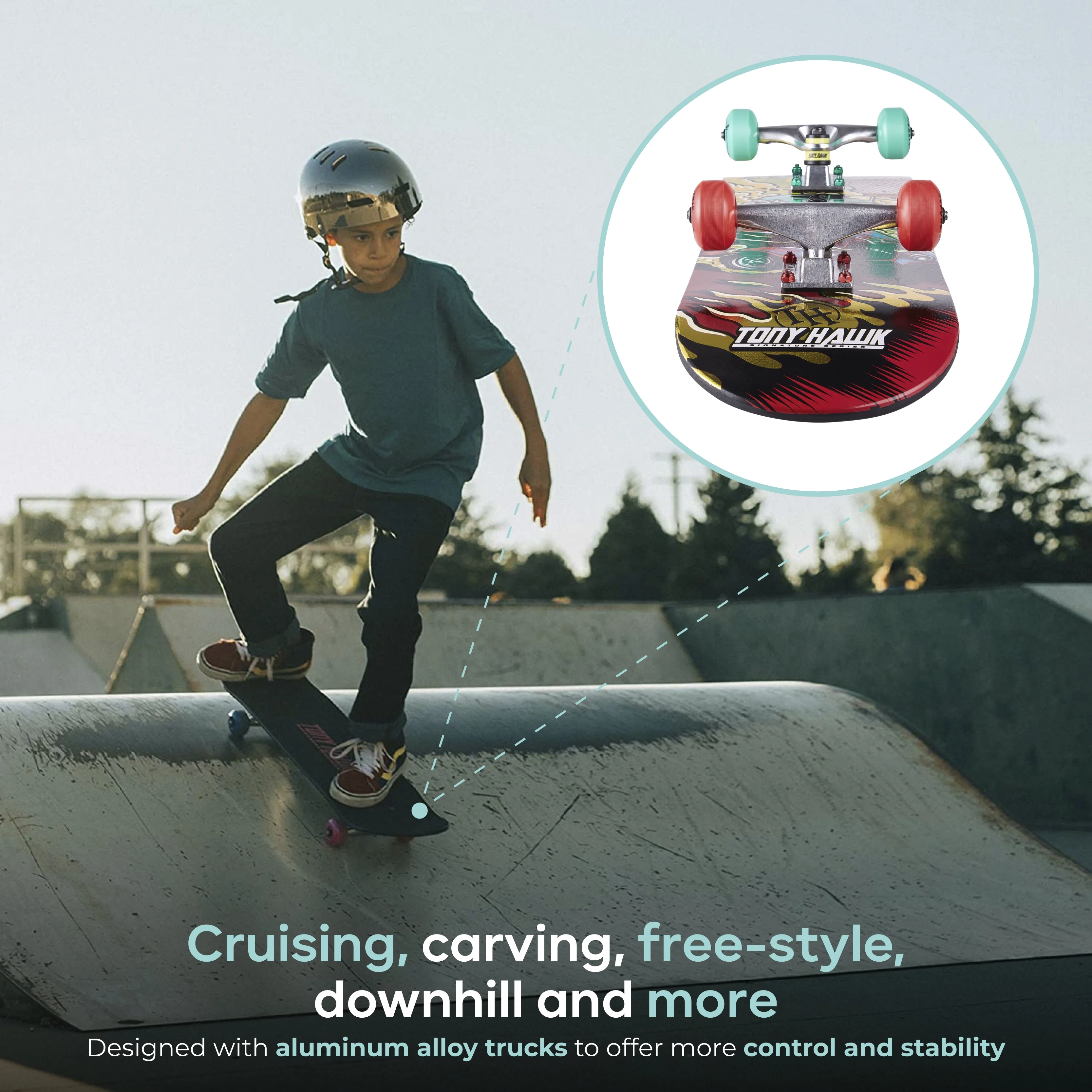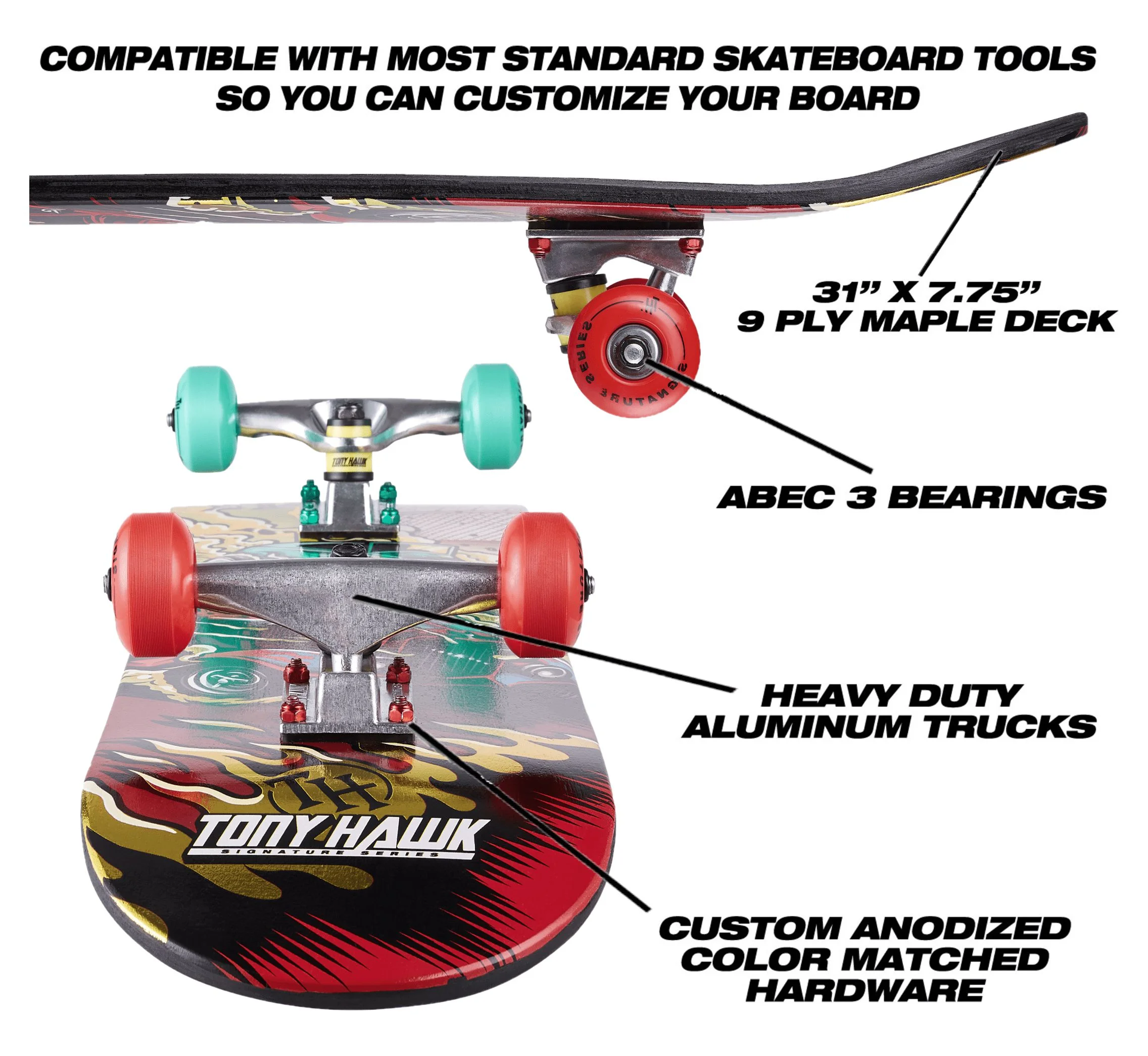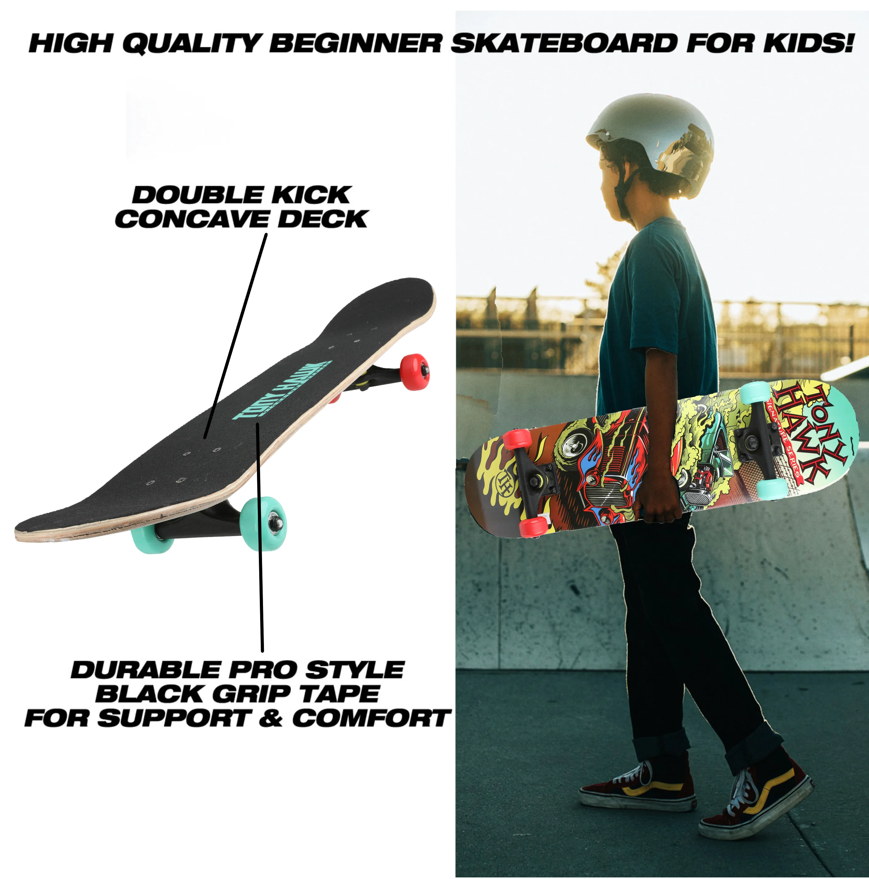 Tony Hawk 31" Popsicle Complete Skateboard with Pro Trucks, Racing Car, for Kids Ages 5+