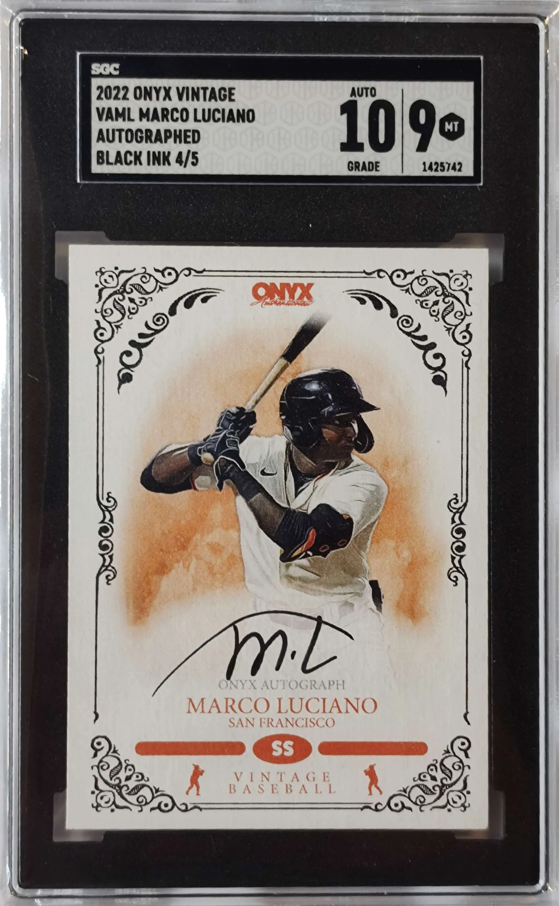 MLB 2022 Onyx Vintage SGC 9 Marco Luciano 4/5 Trading Card VAML (Signed, Black Ink)