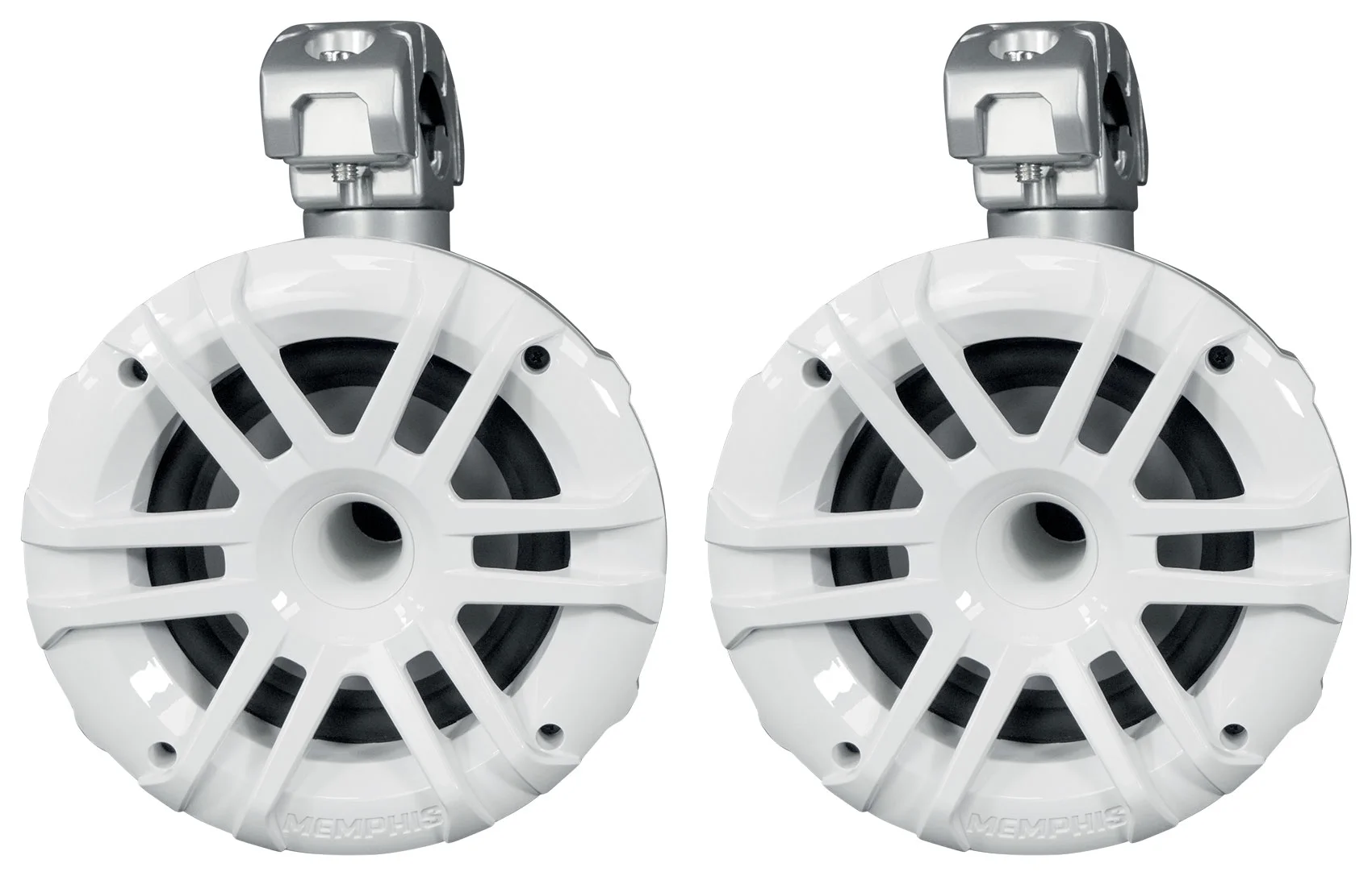 (4) Memphis MXA62TW White 6.5" Marine Wakeboard Tower Speakers+Amplifier+Amp Kit