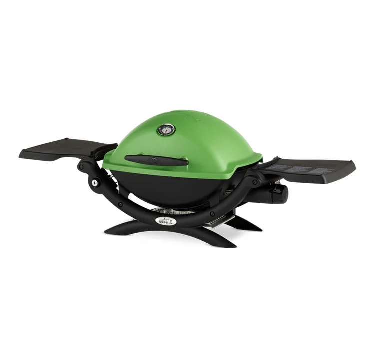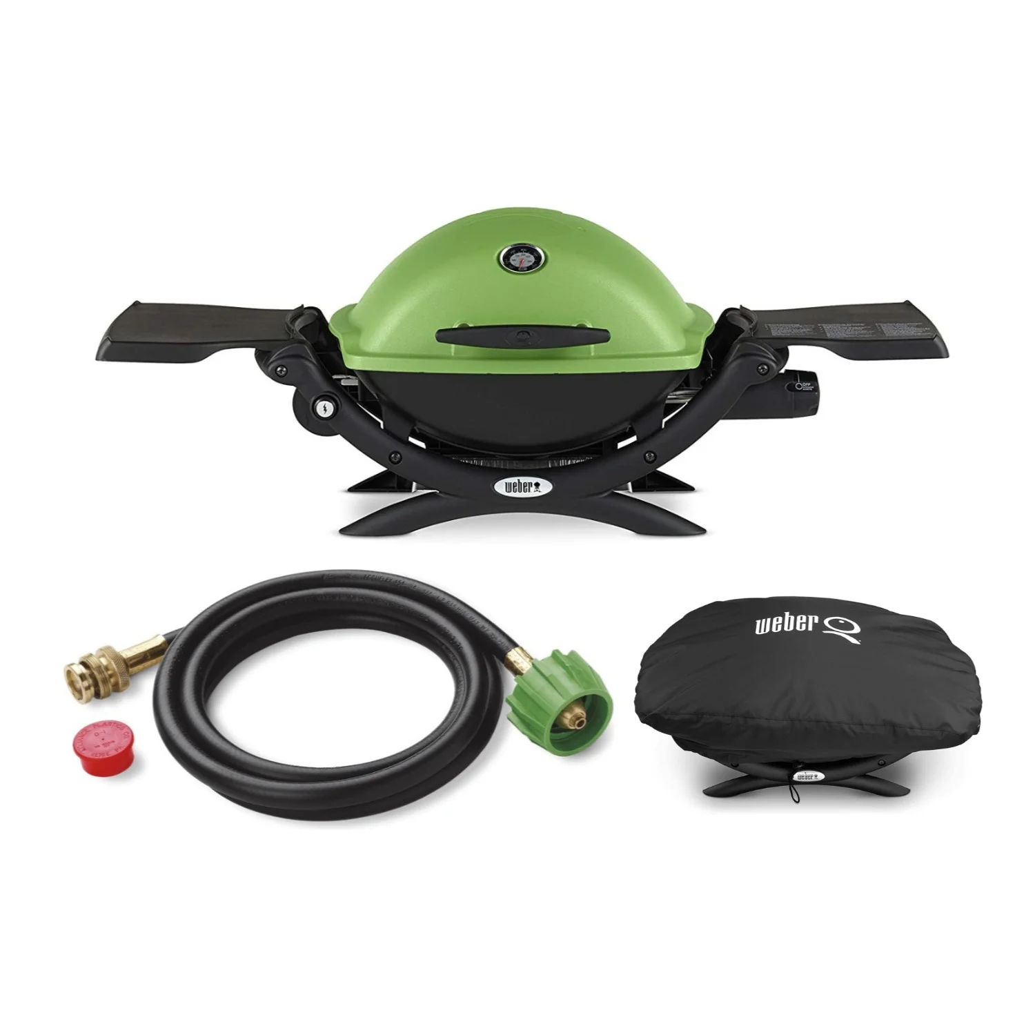 Weber Q 1200 Liquid Propane Grill (Green) with Adapter Hose and Grill Cover