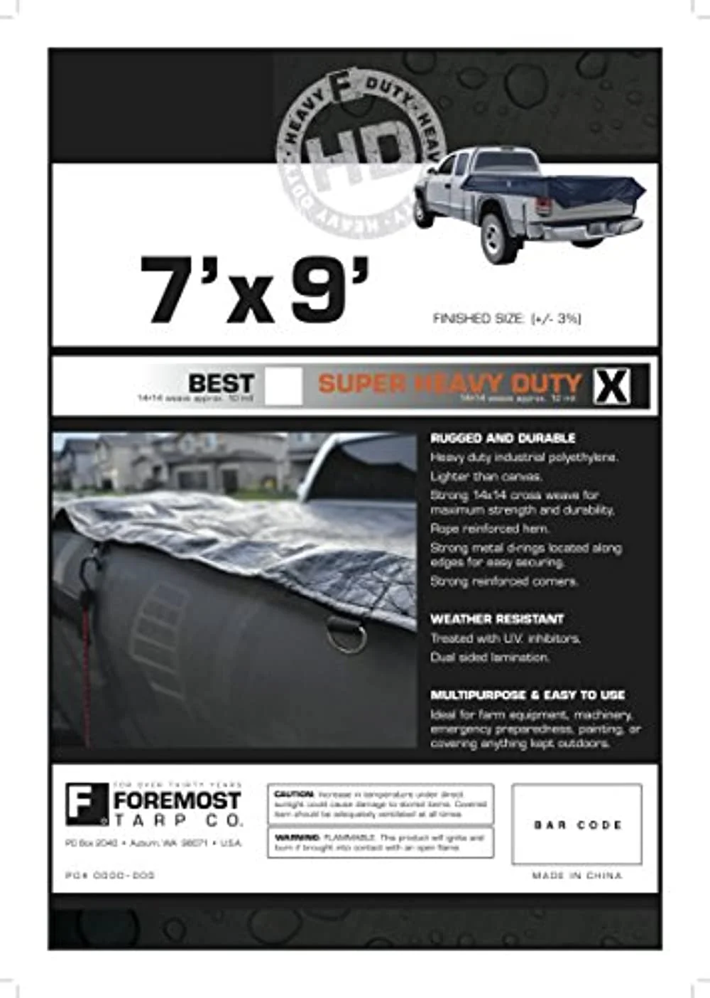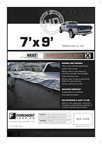 7' x 9' Dry Top Super Heavy Duty Black 12-mil Poly Truck Tarp Item #500790