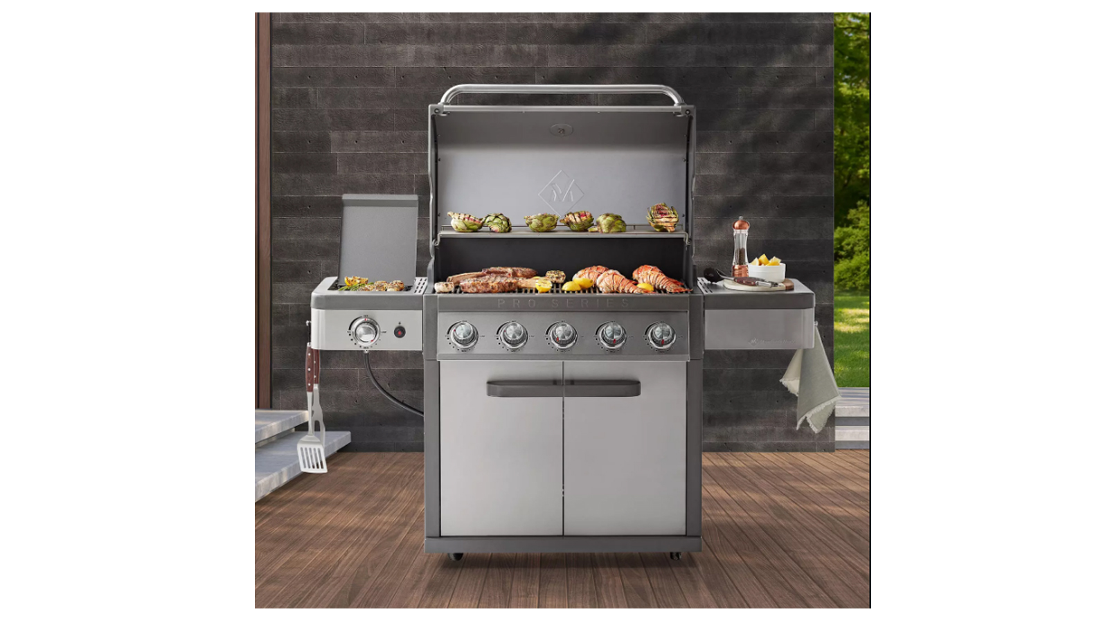 G62302-1 Pro Series 5-Burner Gas Grill Stainless Steel w/ Weatherproof Ignition System