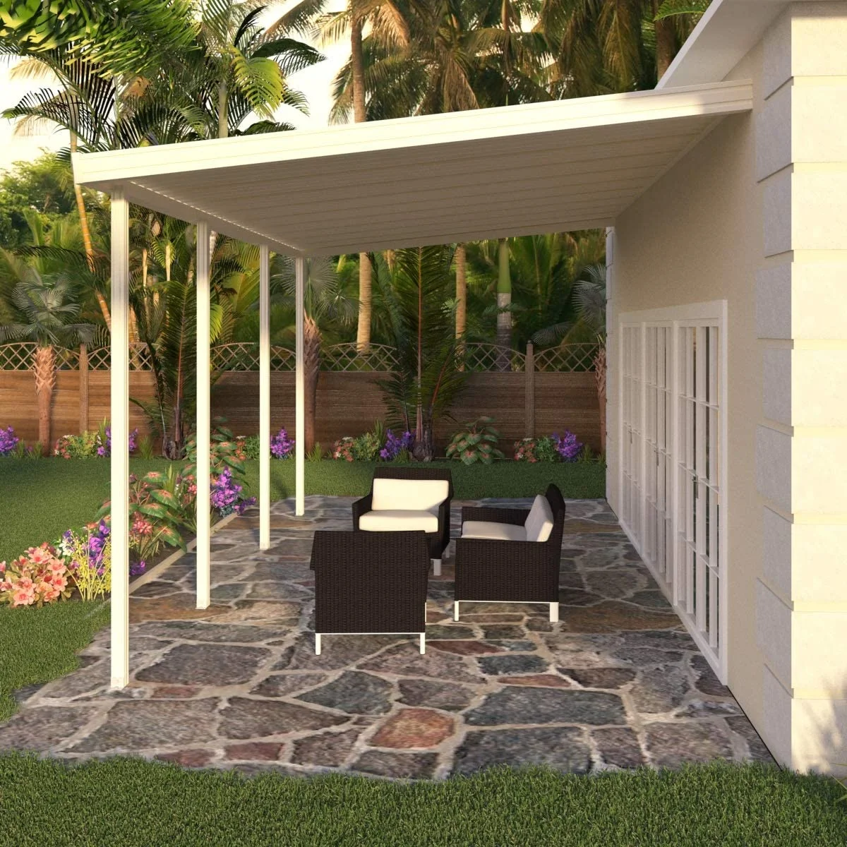 Four Seasons OLS TWV Series 20 ft wide x 14 ft deep Aluminum Patio Cover with 10lb Snowload & 4 Posts in Ivory
