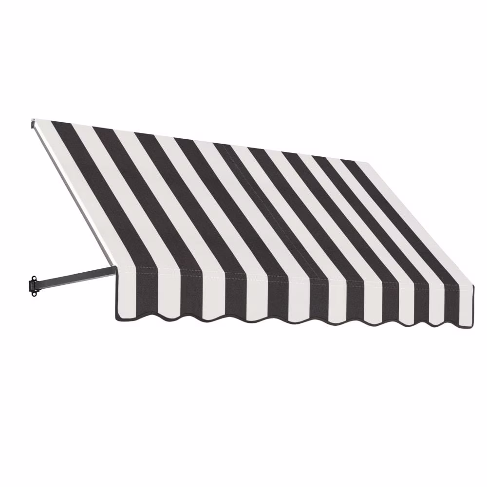Awntech 6.375 ft Dallas Retro Fixed Awning Acrylic Fabric, Black/White Stripe