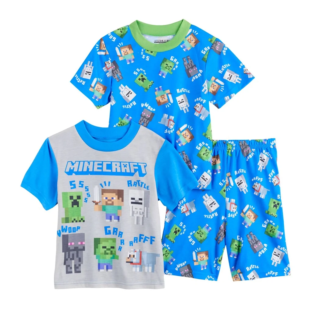 Minecraft Steve, Wolf and Mob Creatures 3-piece Poly Pajama Shorts Set (10)