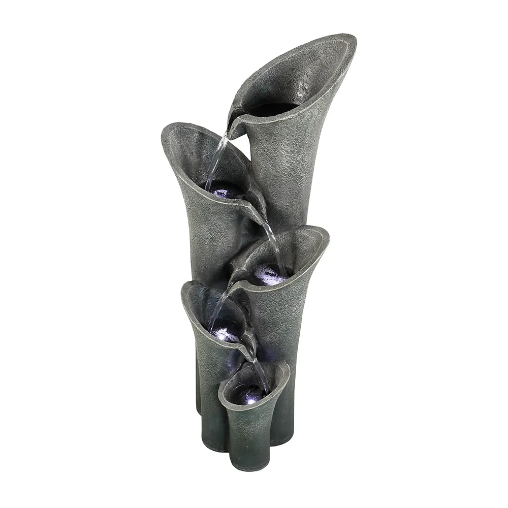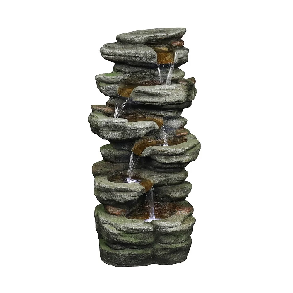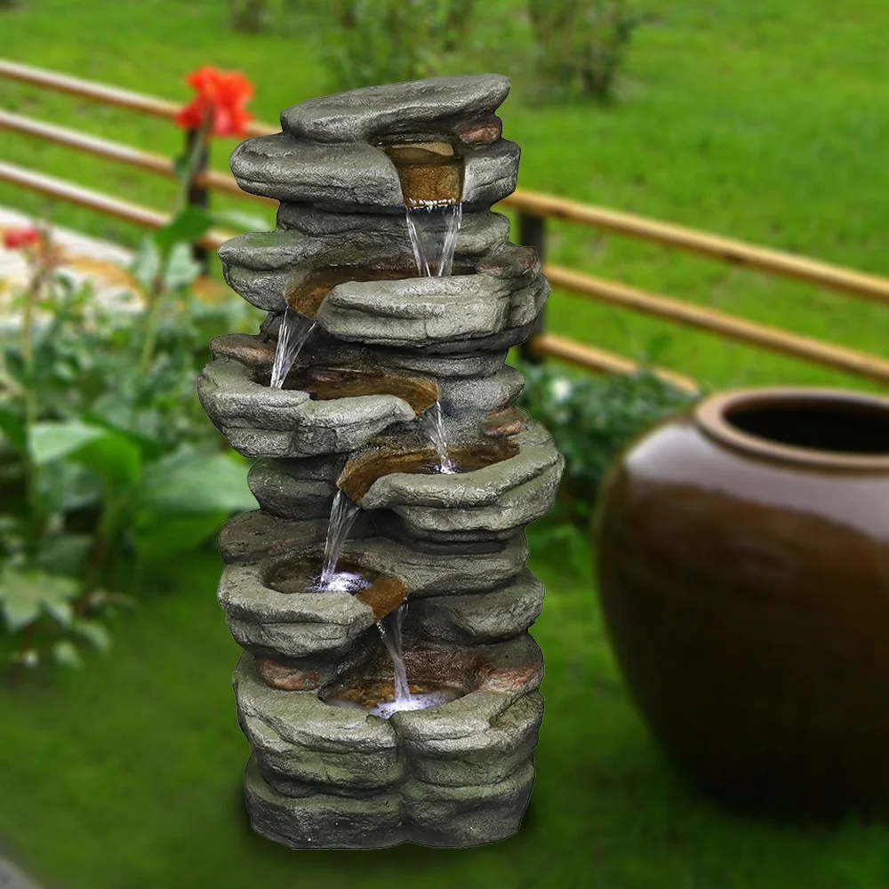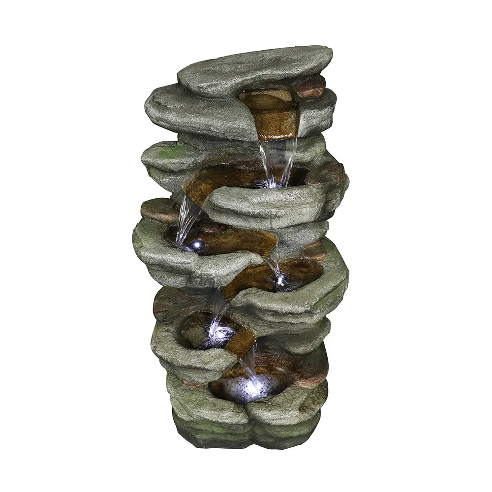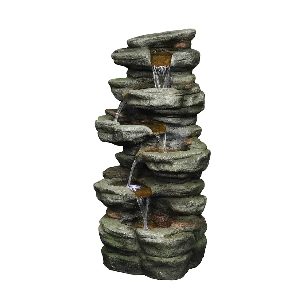 5-Tier Rock Water Fountain with LED Rockery Cascading Outdoor Waterfall Fountain