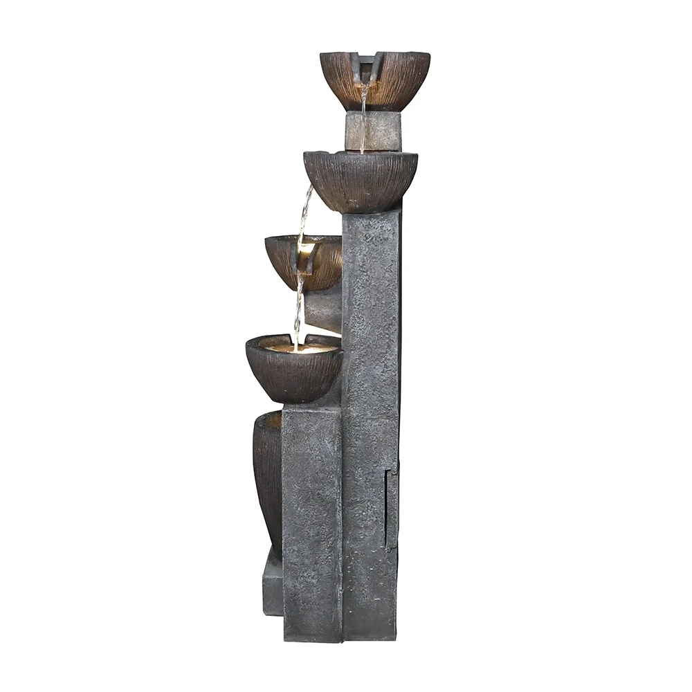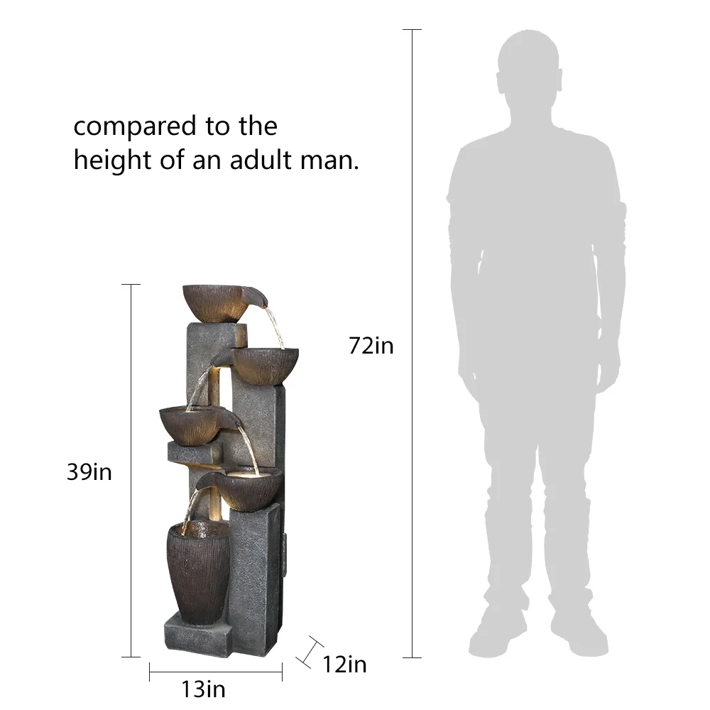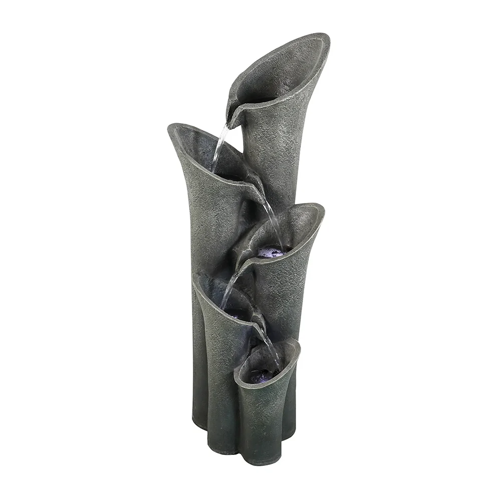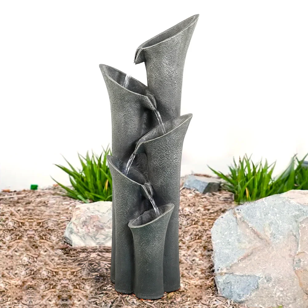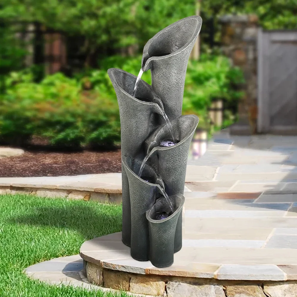 5-Tier Rock Water Fountain with LED Rockery Cascading Outdoor Waterfall Fountain