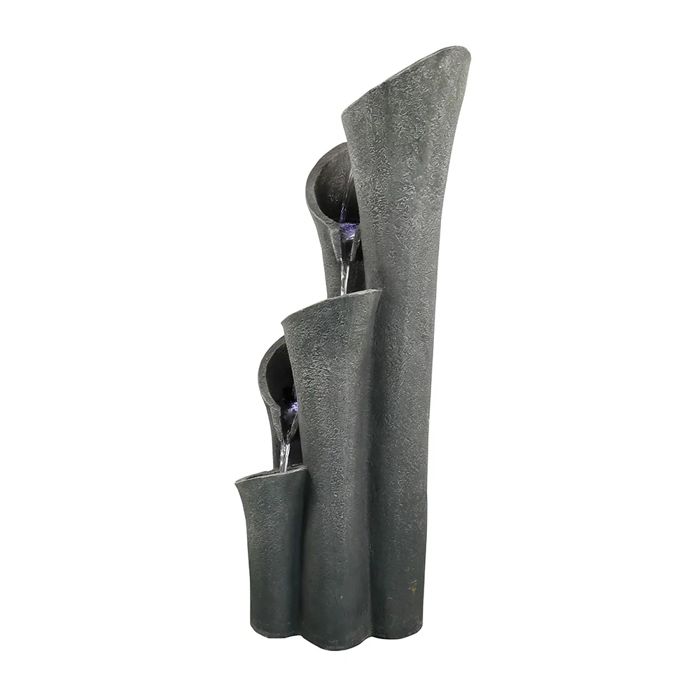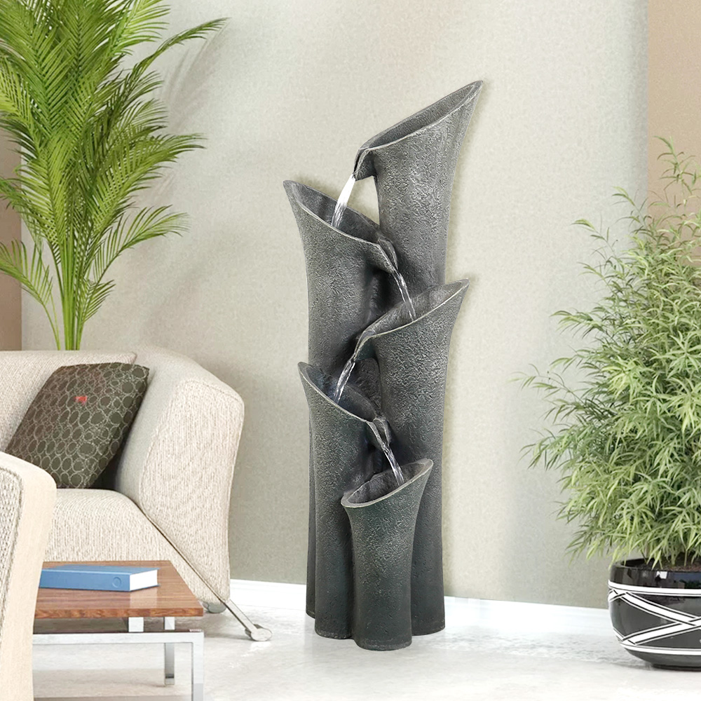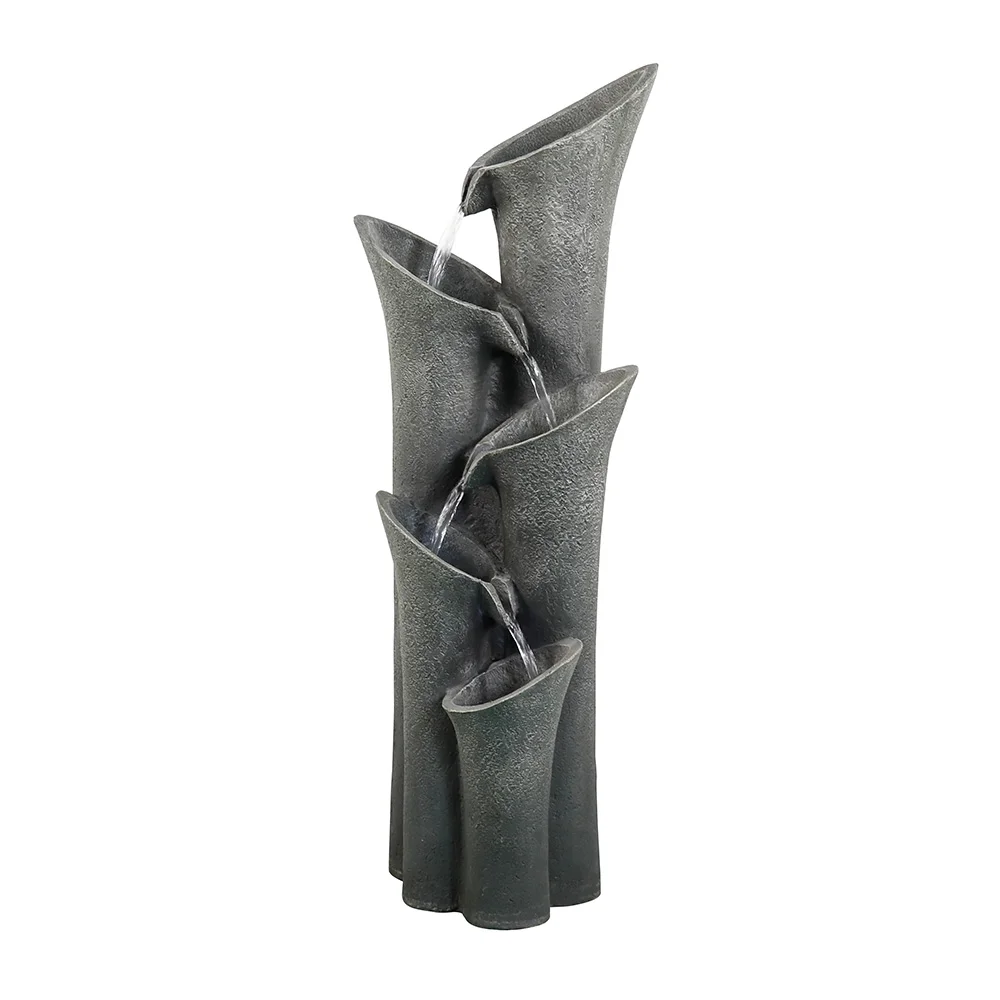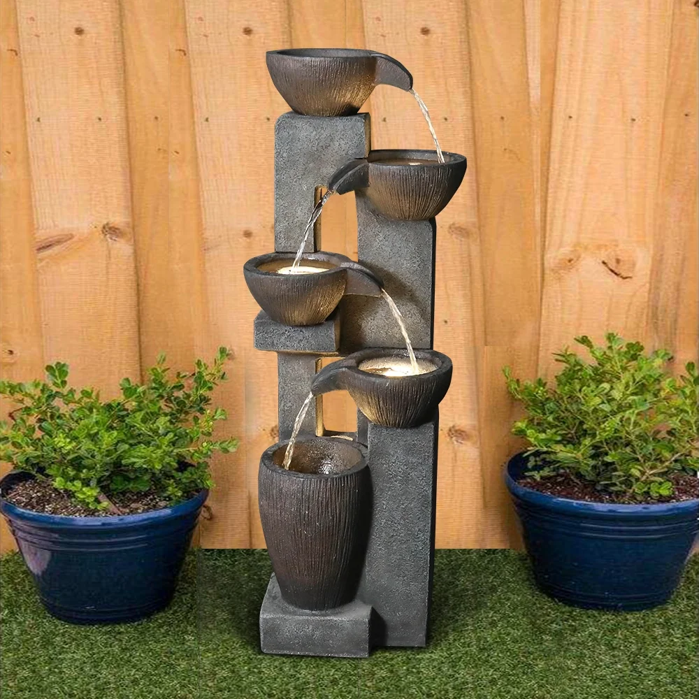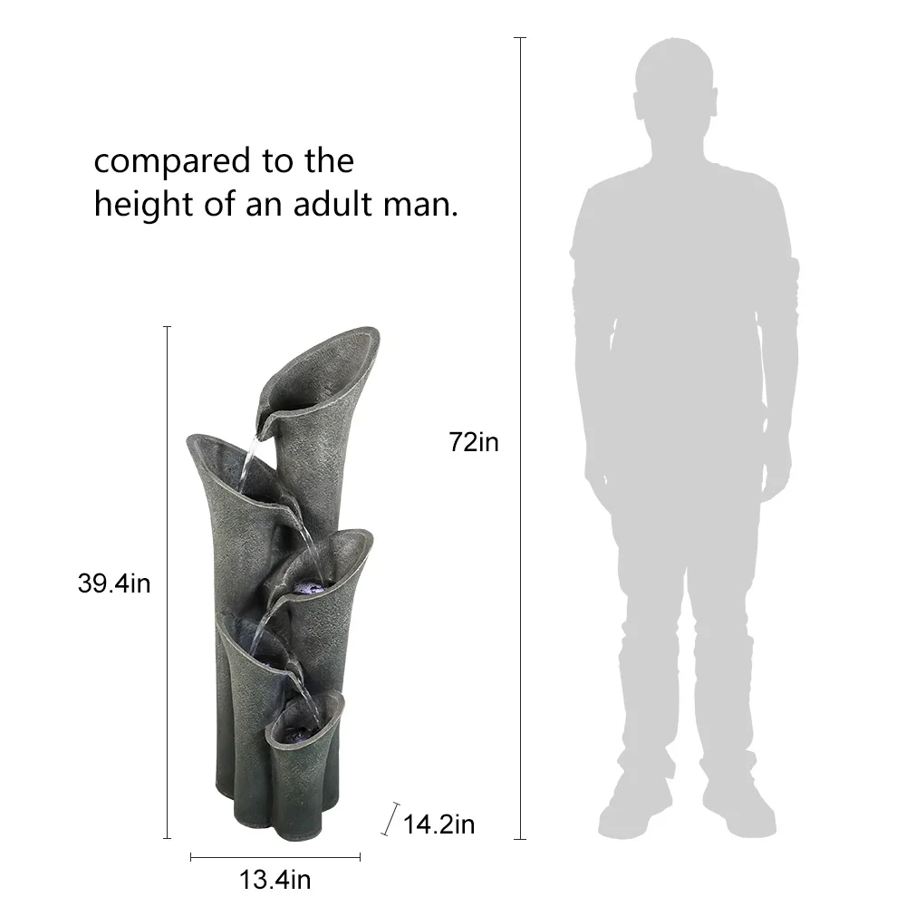 5-Tier Rock Water Fountain with LED Rockery Cascading Outdoor Waterfall Fountain