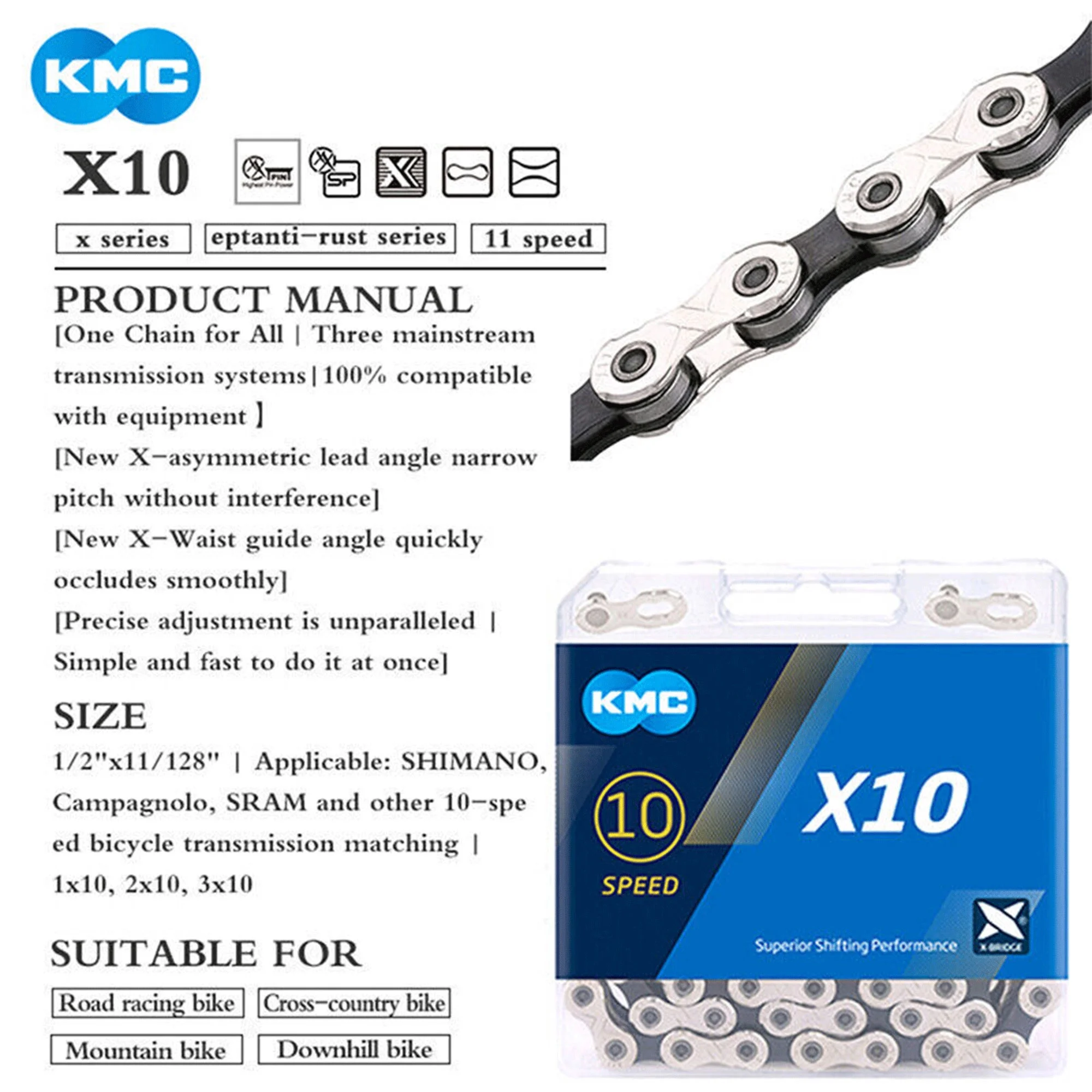 KMC 10 Speed Road Bike Chain 116 Links Quick Link MTB Road Bicycle for Shimano SRAM