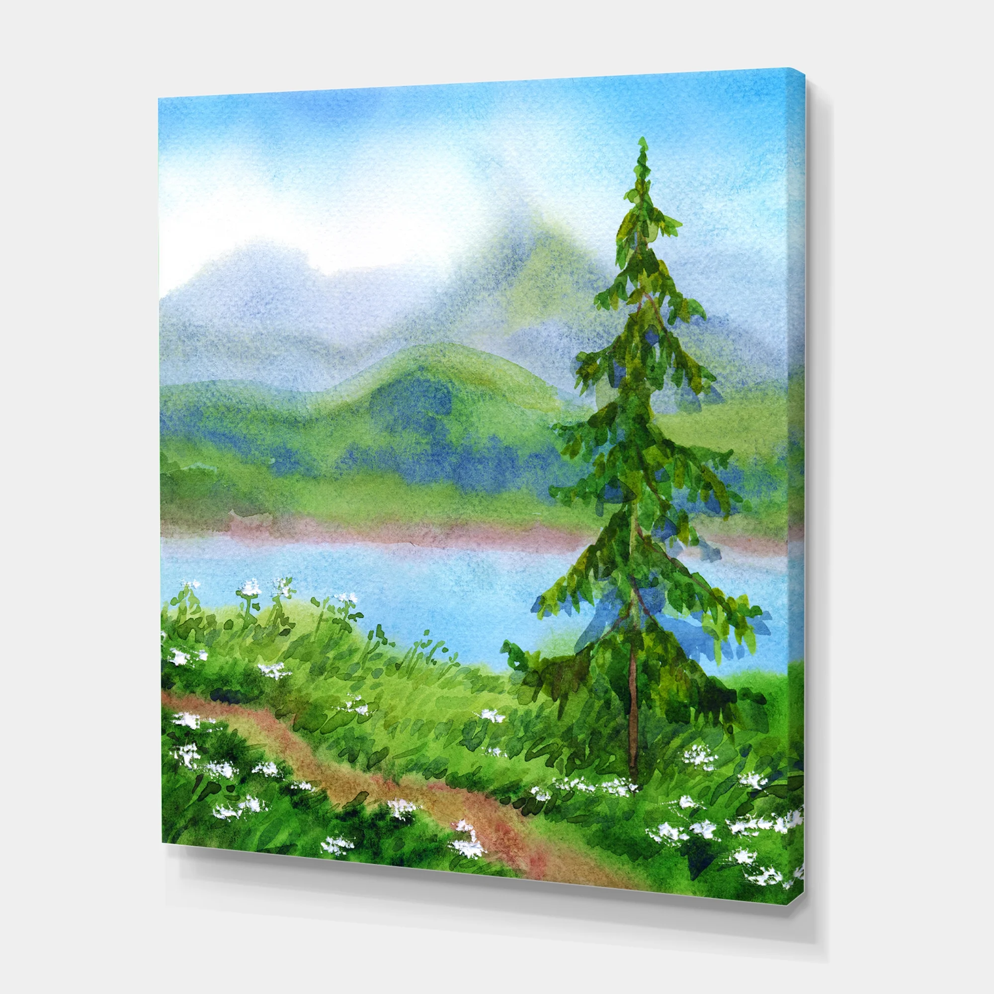Designart ' Landscape River Spruce Near The Trail On A Hill ' Traditional Canvas Wall Art Print