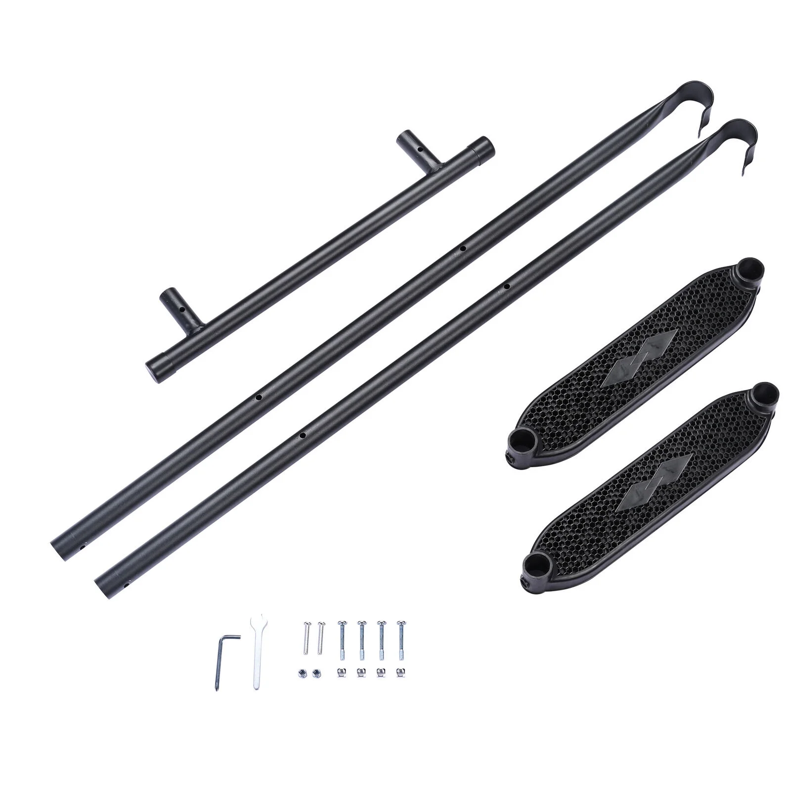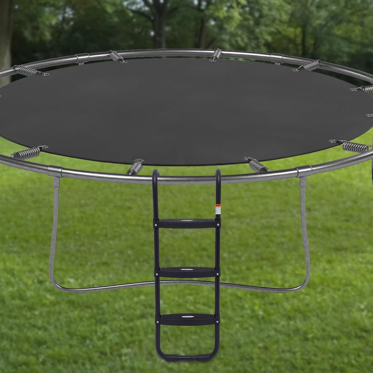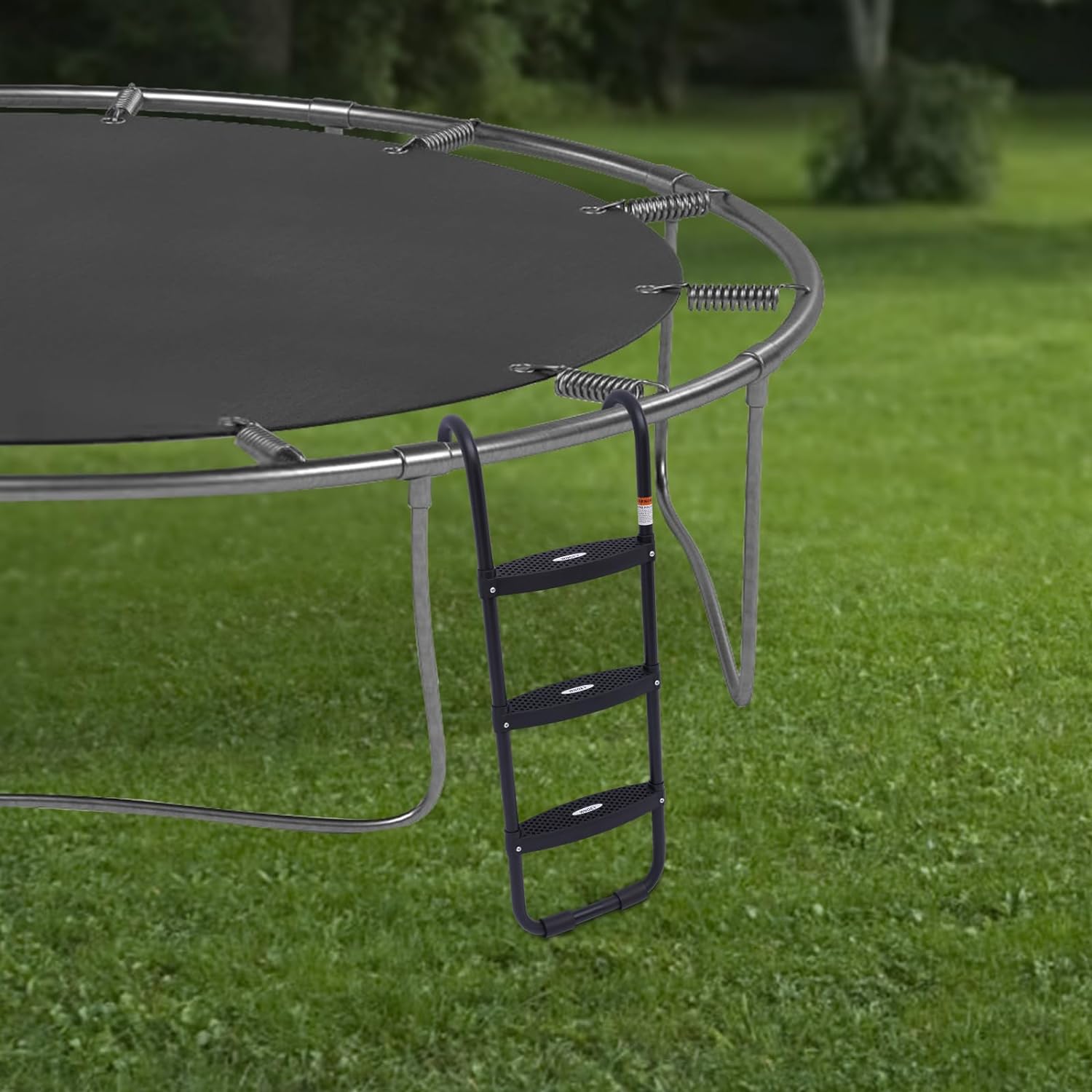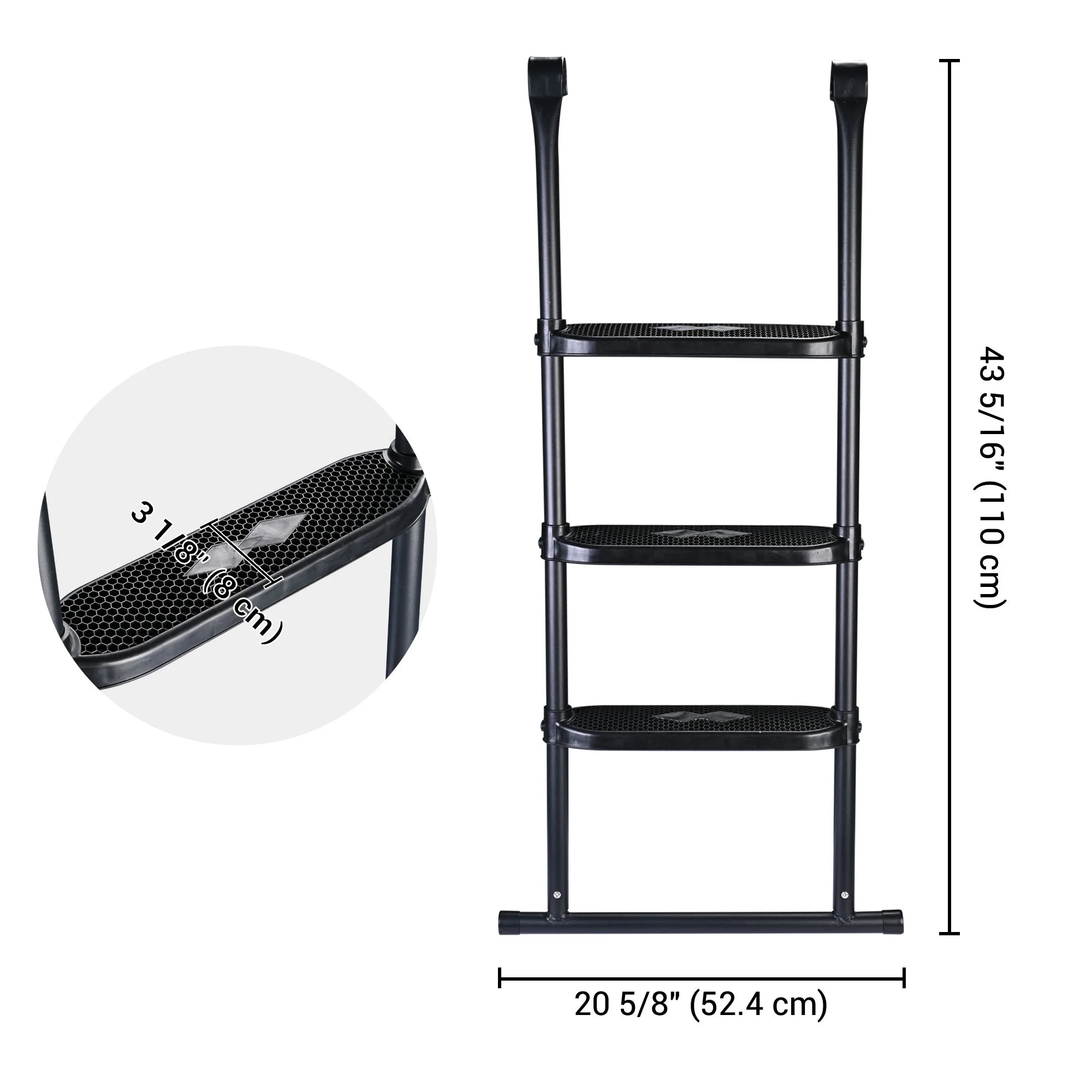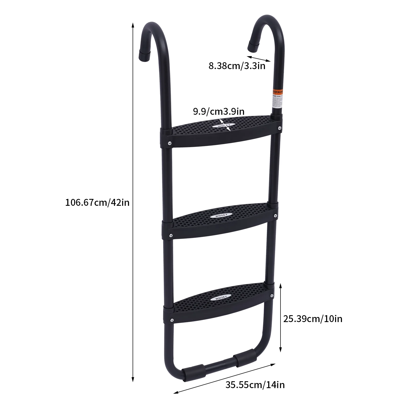 Black Trampoline Ladder 3 Wide with Anti-Slip Steps Universal Hooks, Steel, 14X42in