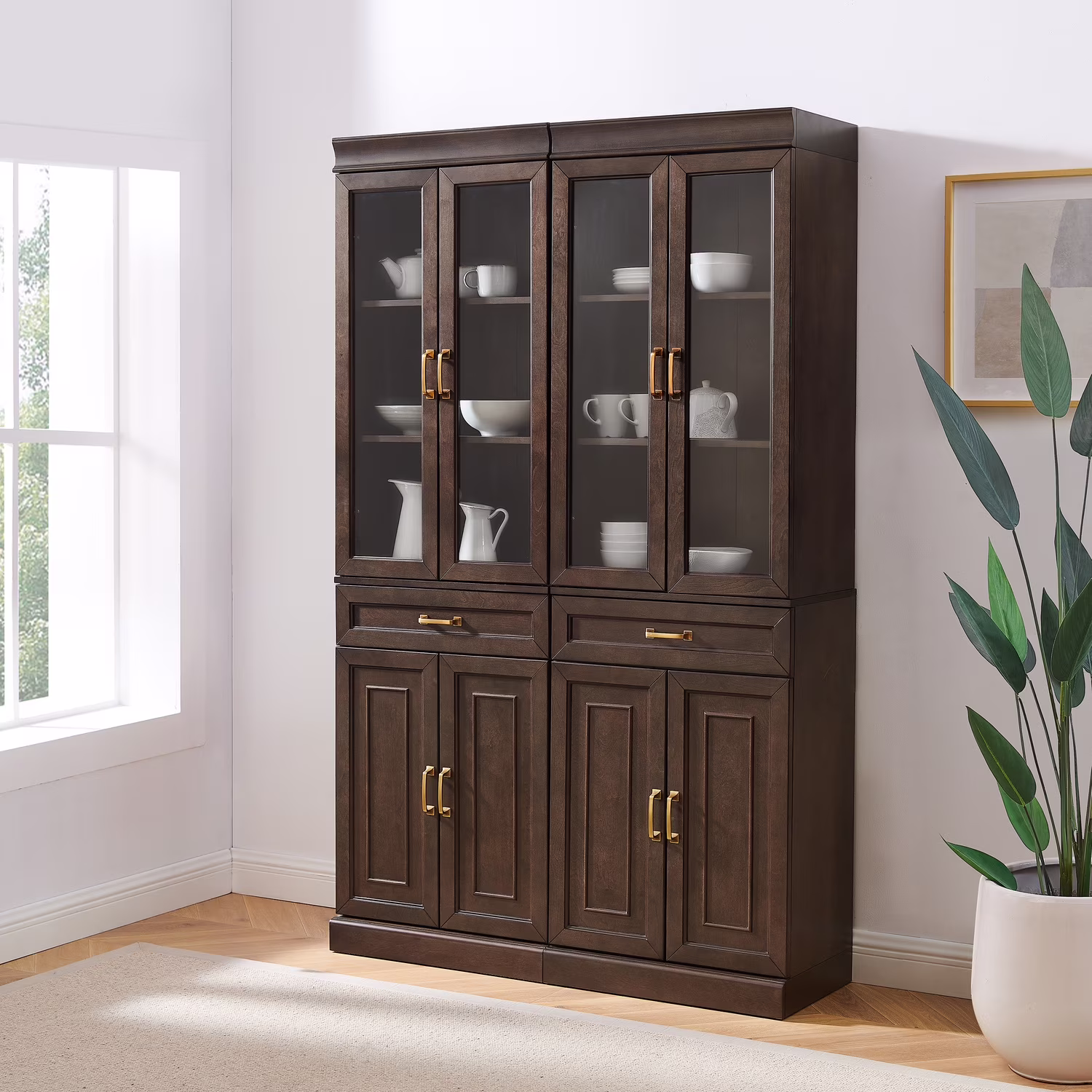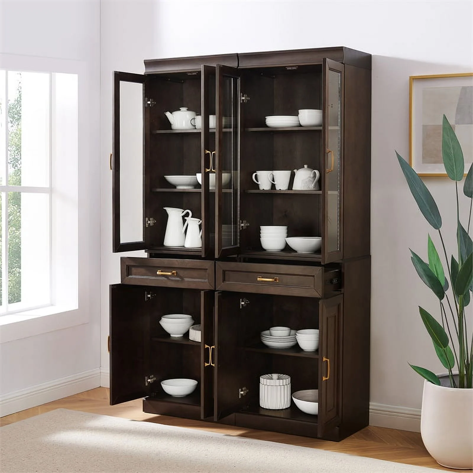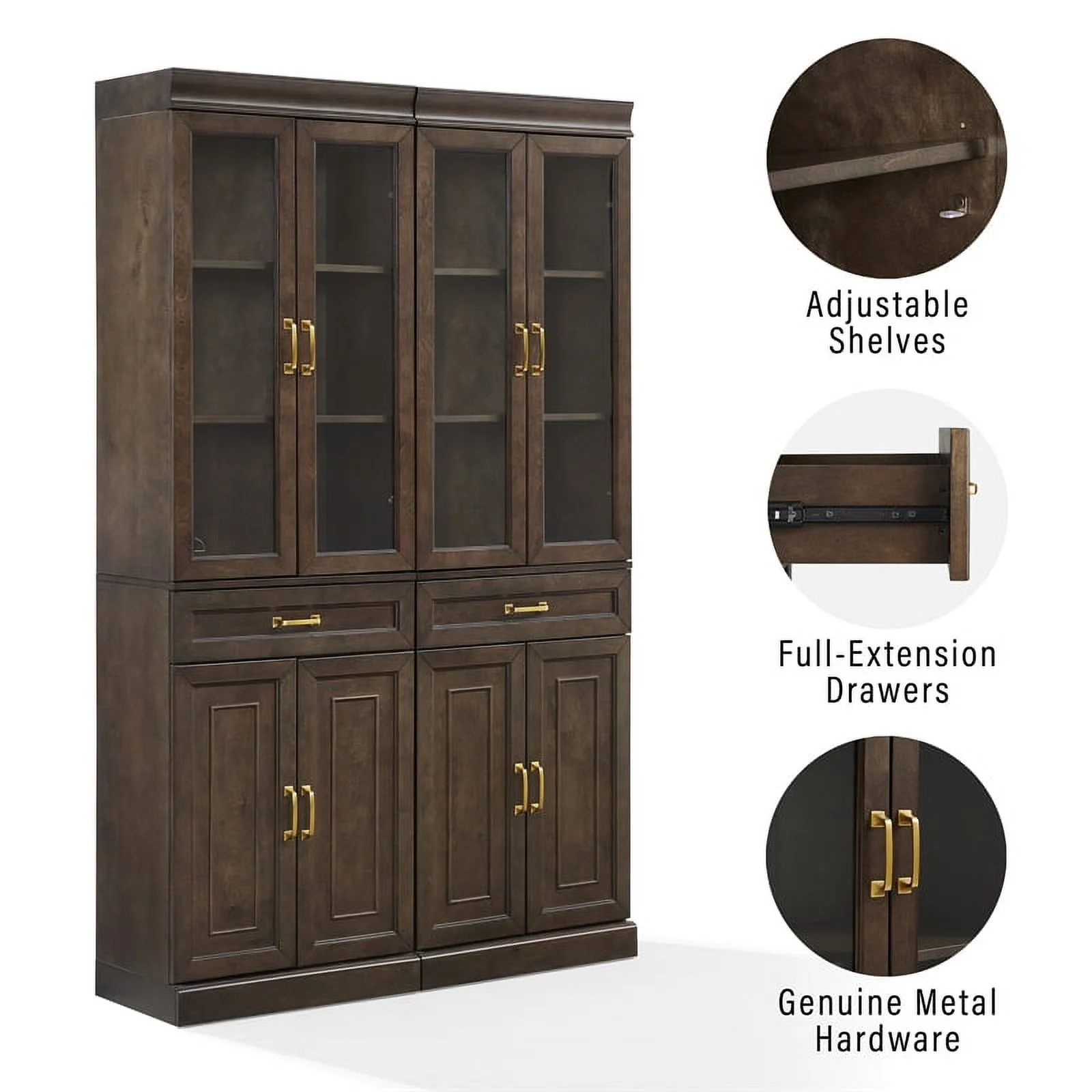 Crosley Furniture Stanton Wood Kitchen Storage Pantry Set in Coffee (Set of 2)