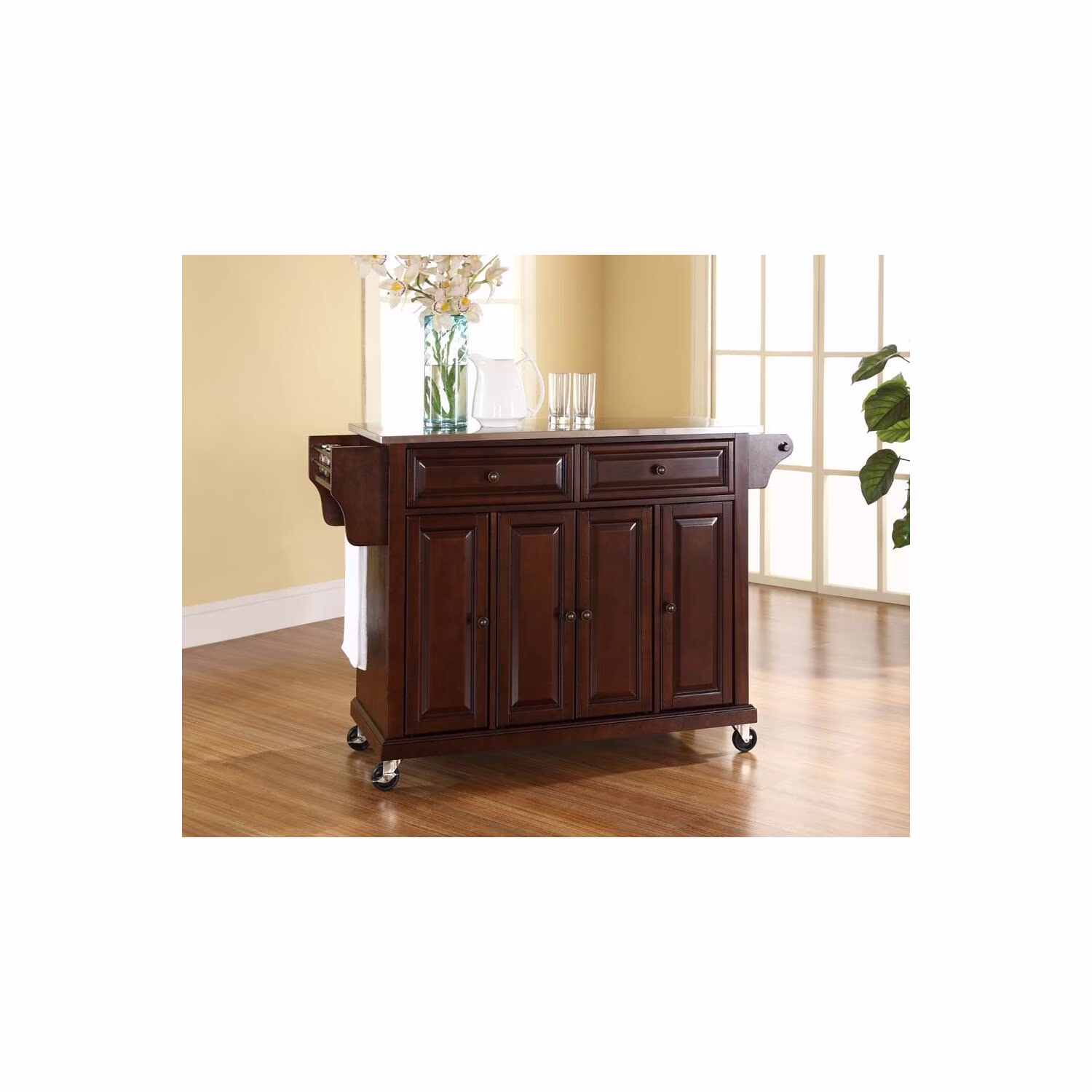 Crosley Furniture Wood/Stainless Steel Kitchen Cart in Mahogany/Silver