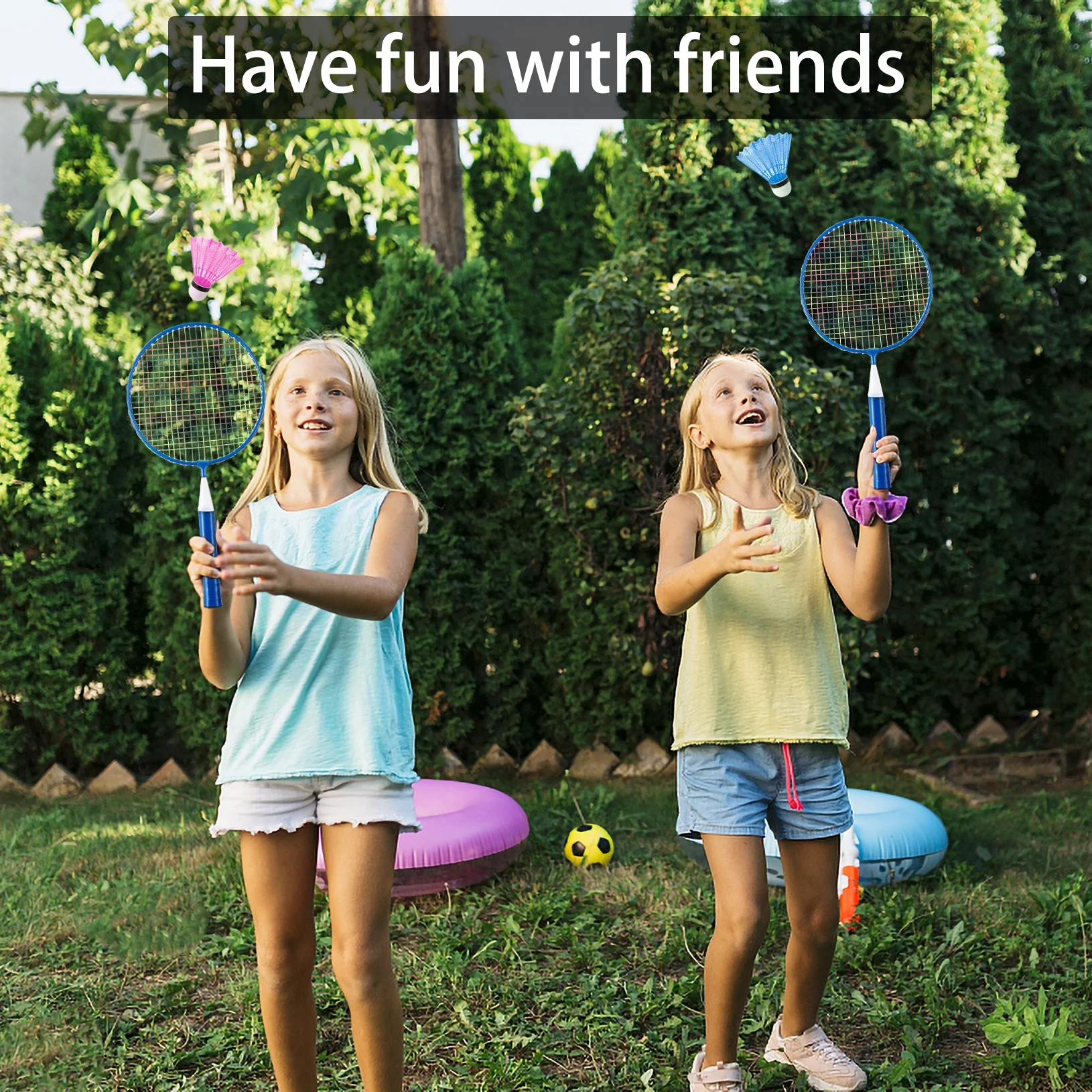 Badminton Rackets for Children Kids Badminton Set Playing Training Tool, Indoor Outdoor Sport Game for Child Beginner Players (2 Racket, 5 Badminton Balls, 1 Backpack)