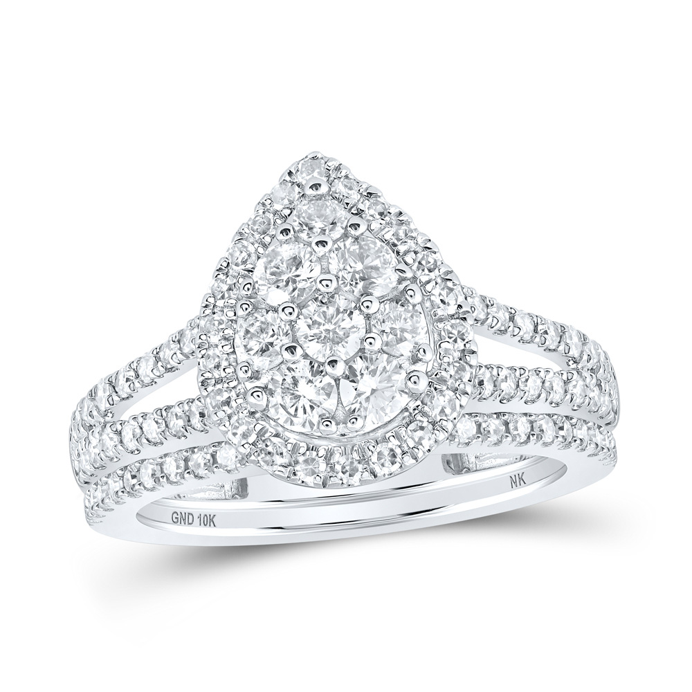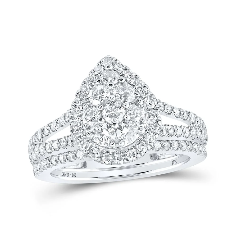 Women's Solid 10kt White Gold Round Diamond Teardrop Bridal Wedding Ring Band Set 1 Cttw Ring Size 6