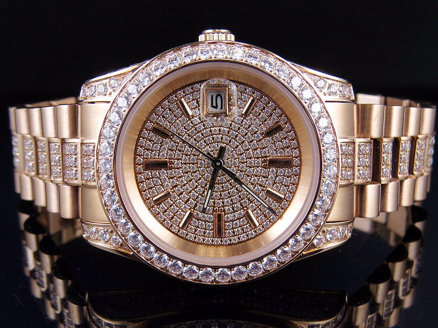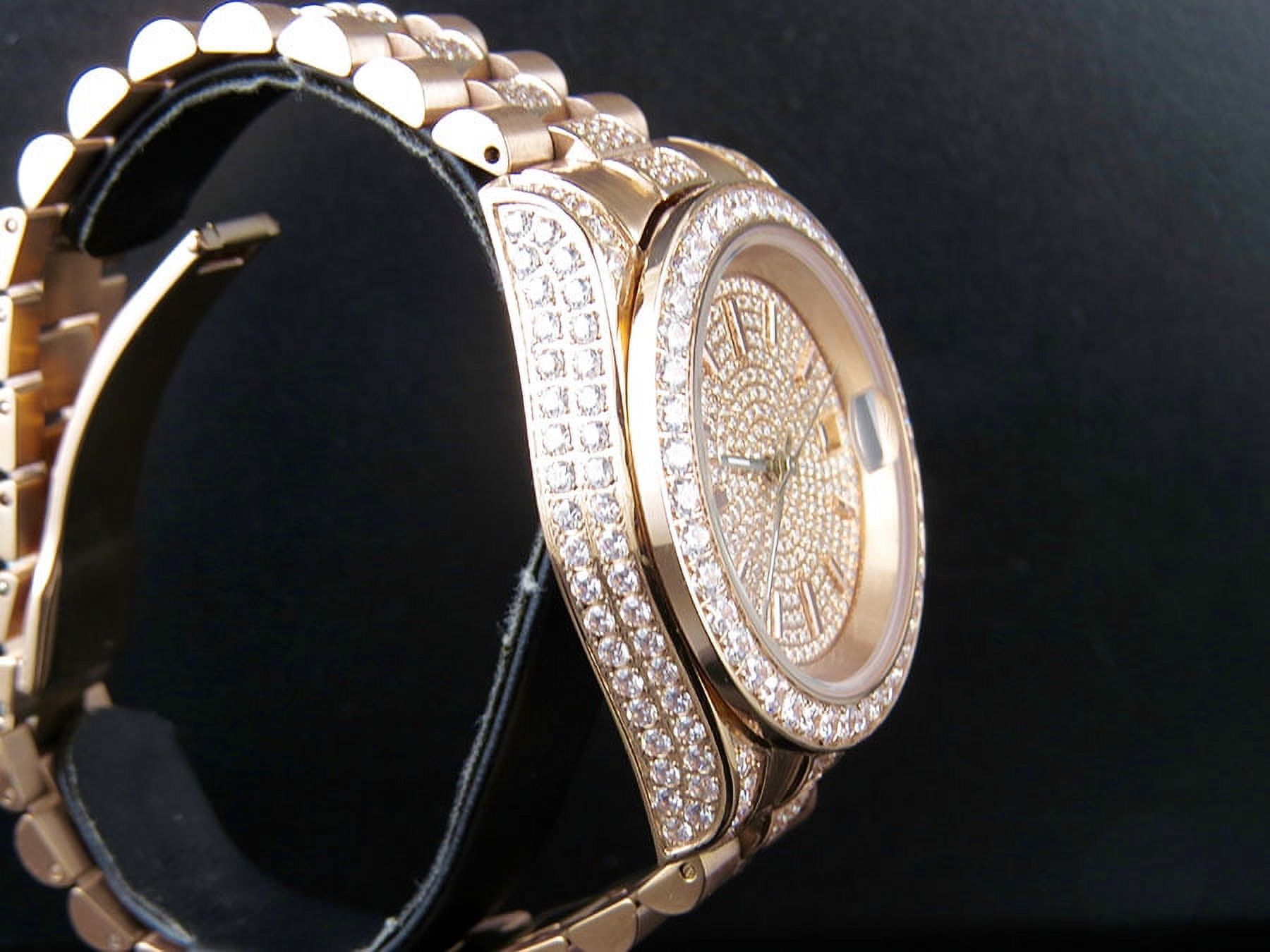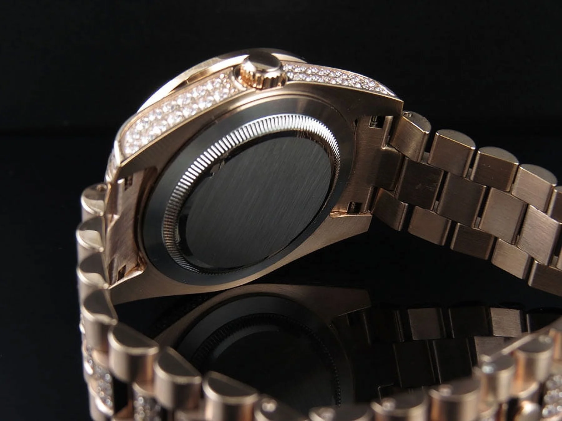 Mens Rose Gold Stainless Steel Presidential Simulated Diamond Watch 41MM