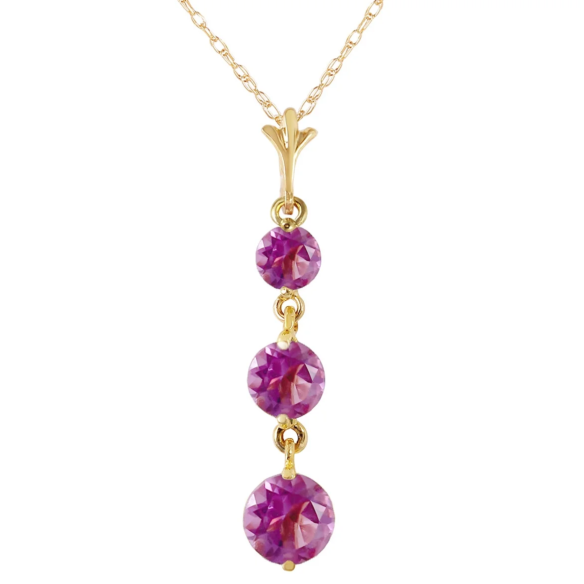 Galaxy Gold 14k 22" Solid Yellow Gold Natural Purple Amethyst Drop Pendant Necklace
