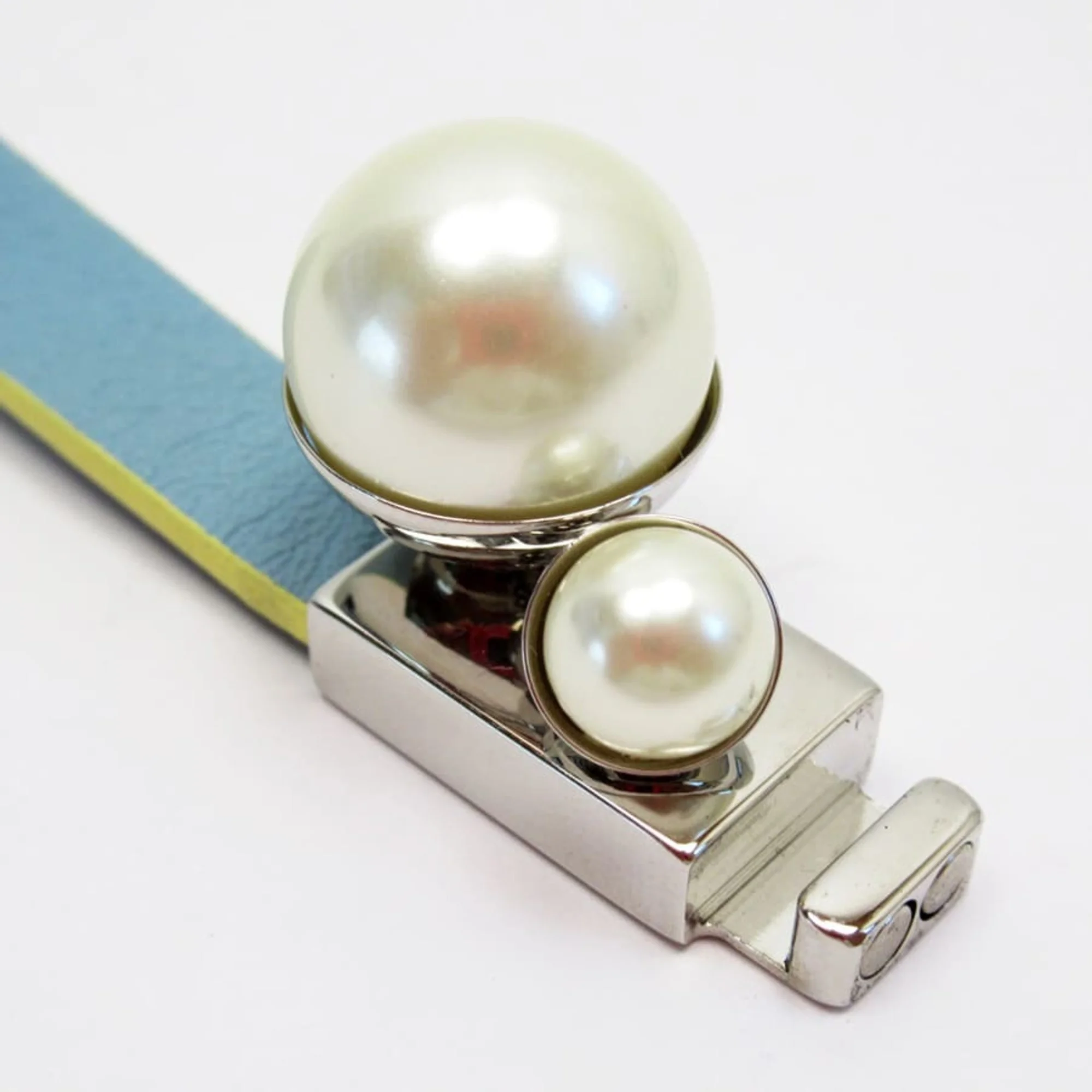 Pre-Owned Christian Dior Choker (S) Blue x Yellow Silver Pearl White Leather Metal Material Fake (Good)